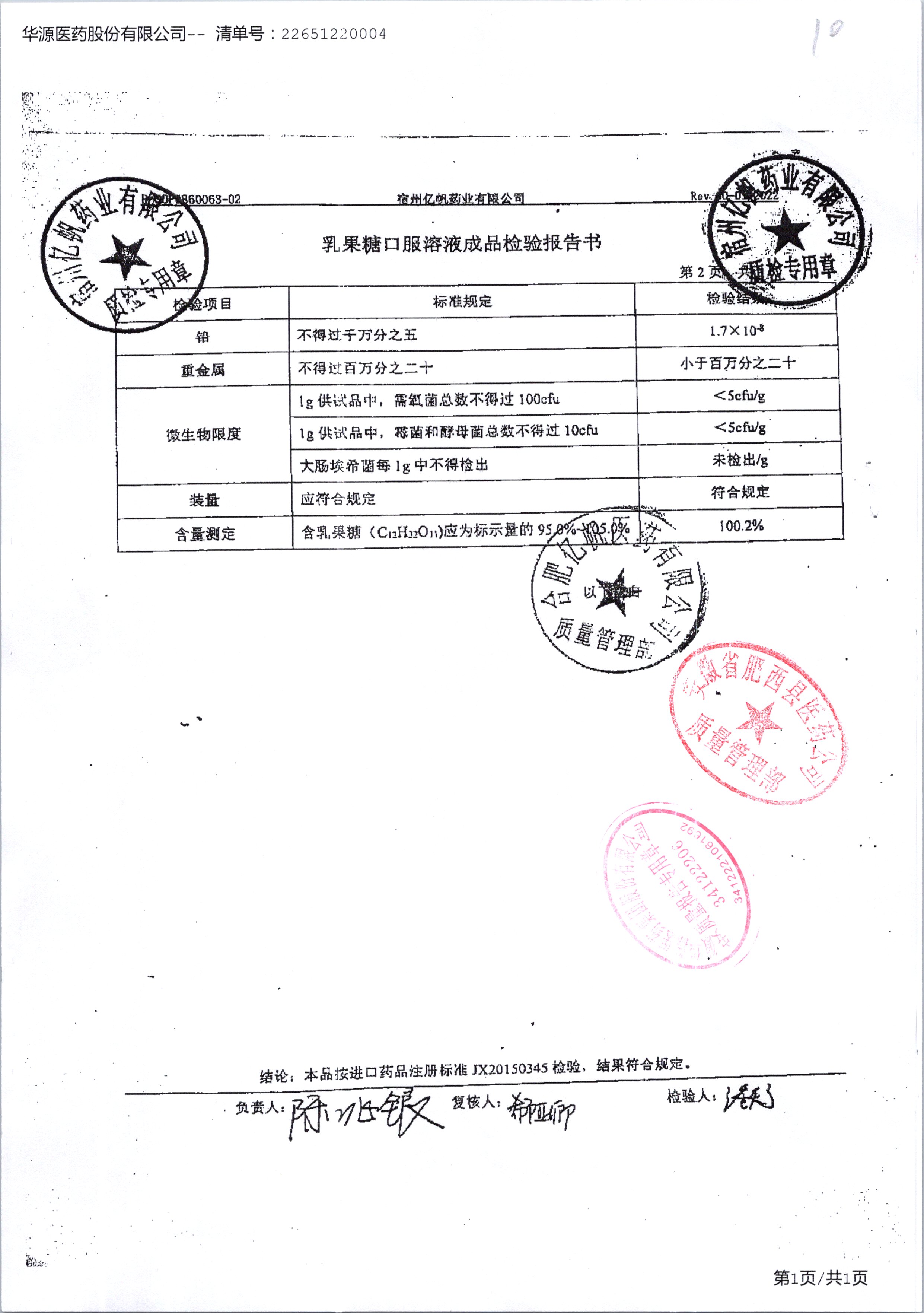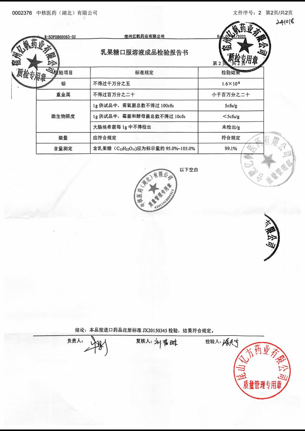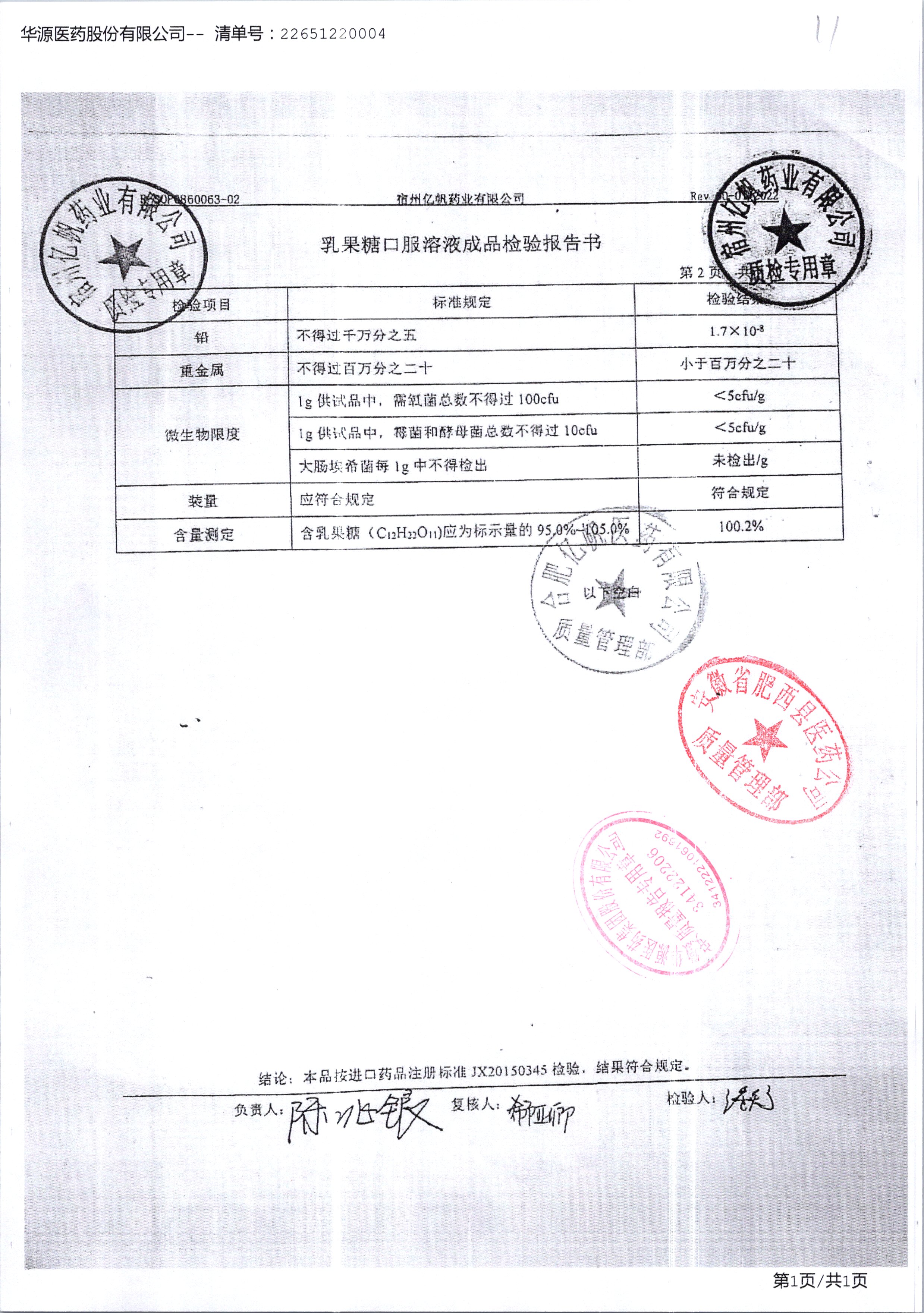 | 乳果糖口服溶液 | 100ml:67g | 17244131/2 | 查看詳情 |