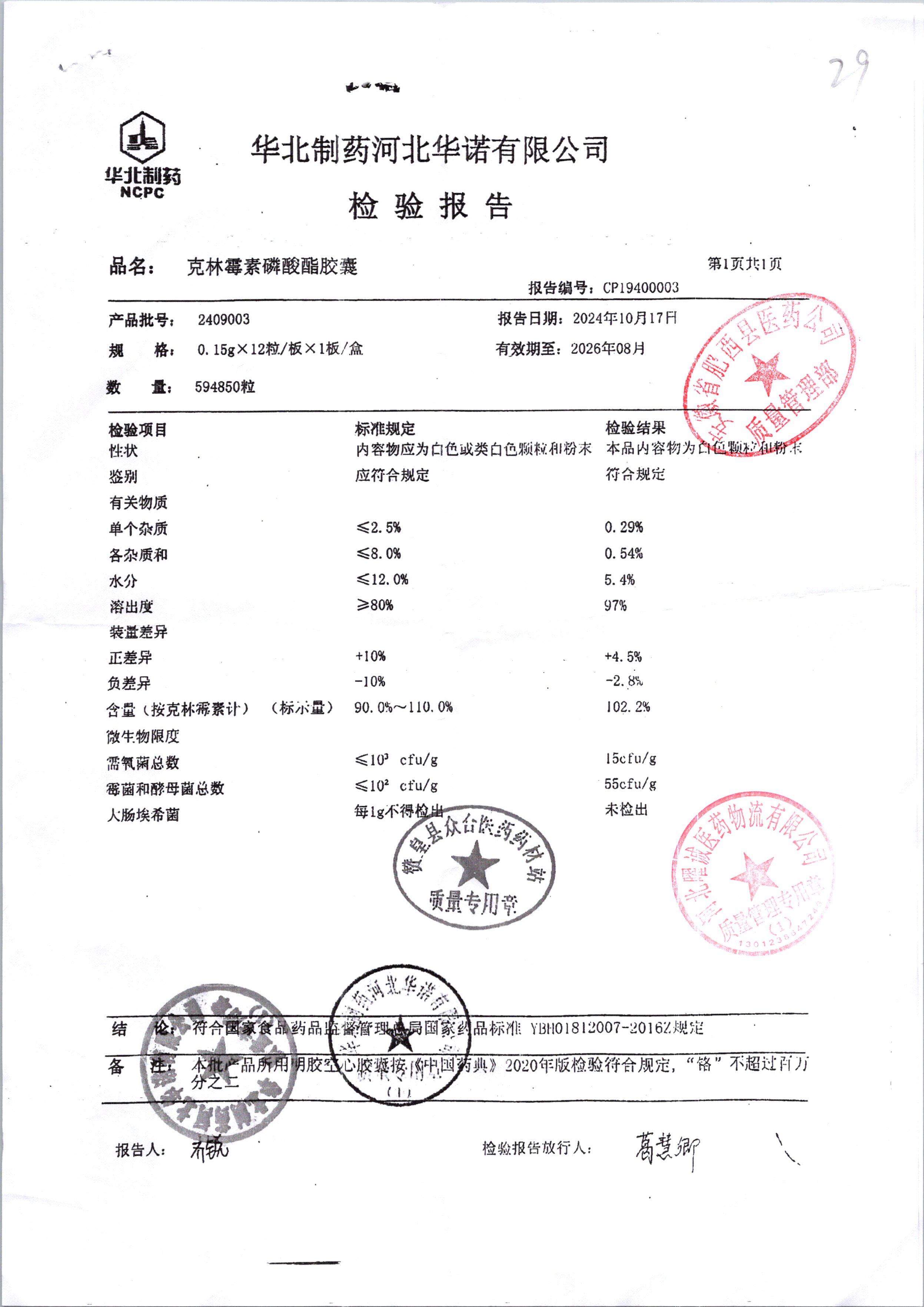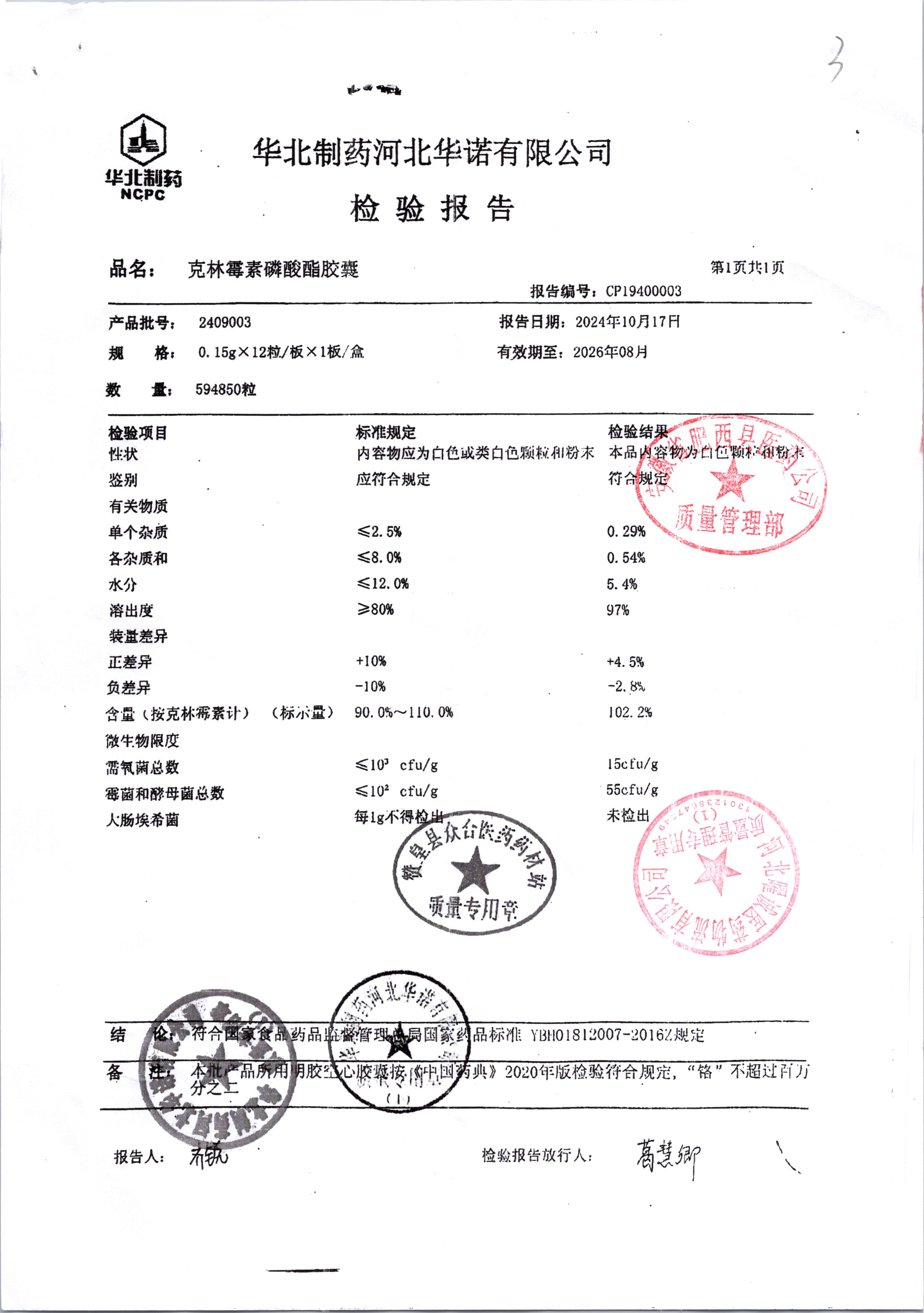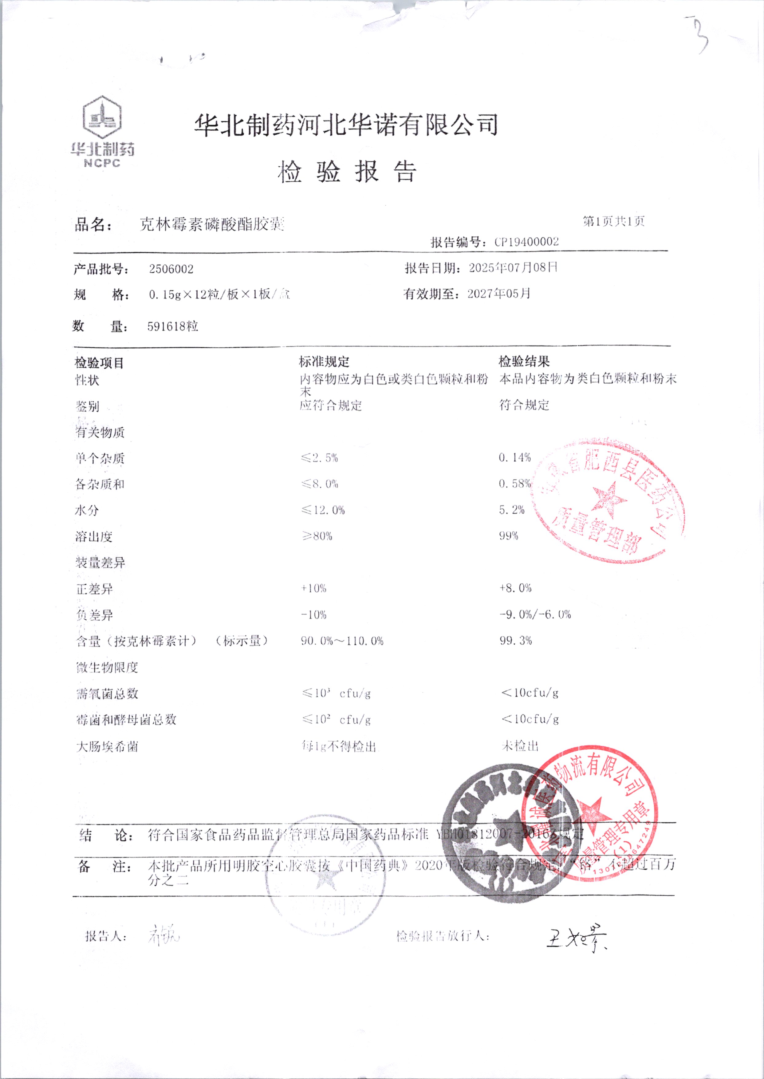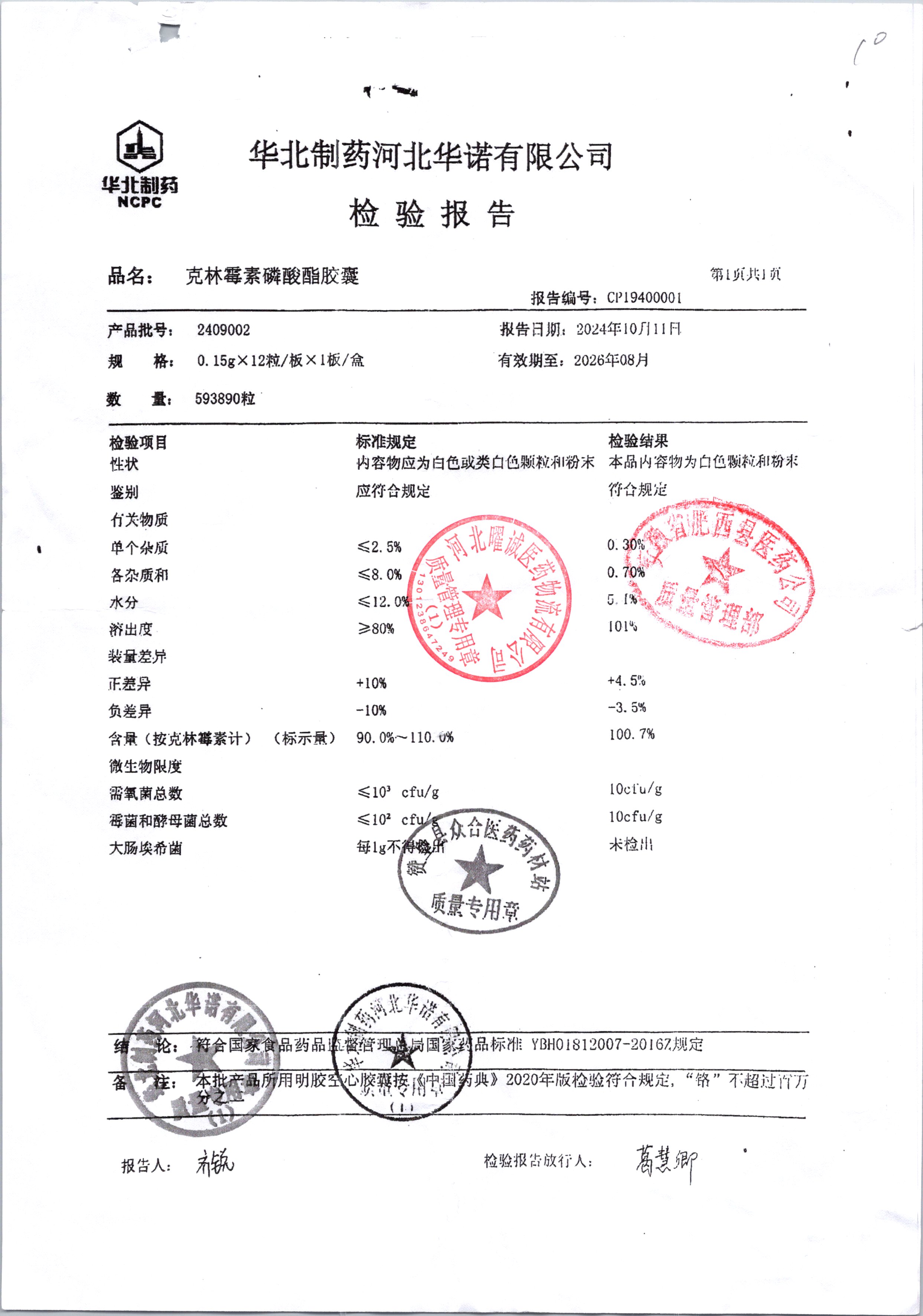 | 克林霉素磷酸酯膠囊 | 0.15G12粒 | 2409003 | 查看詳情 |