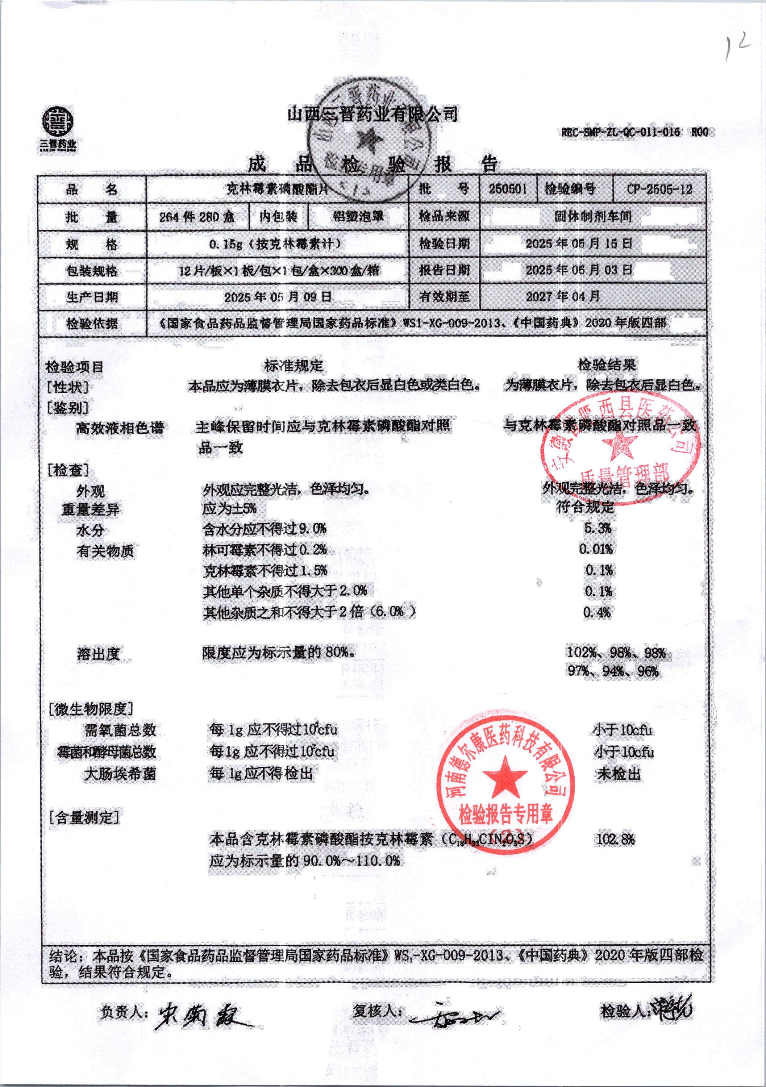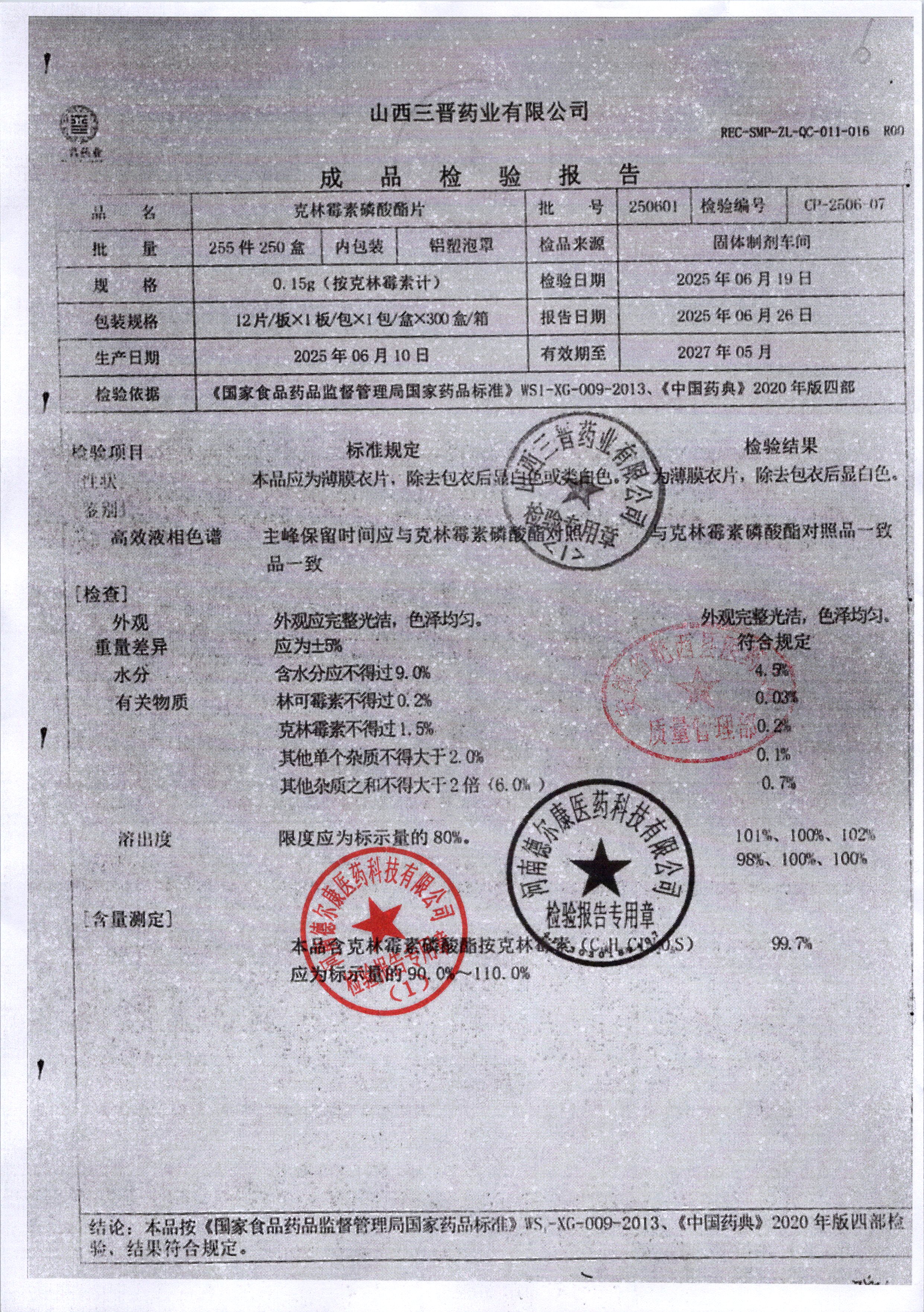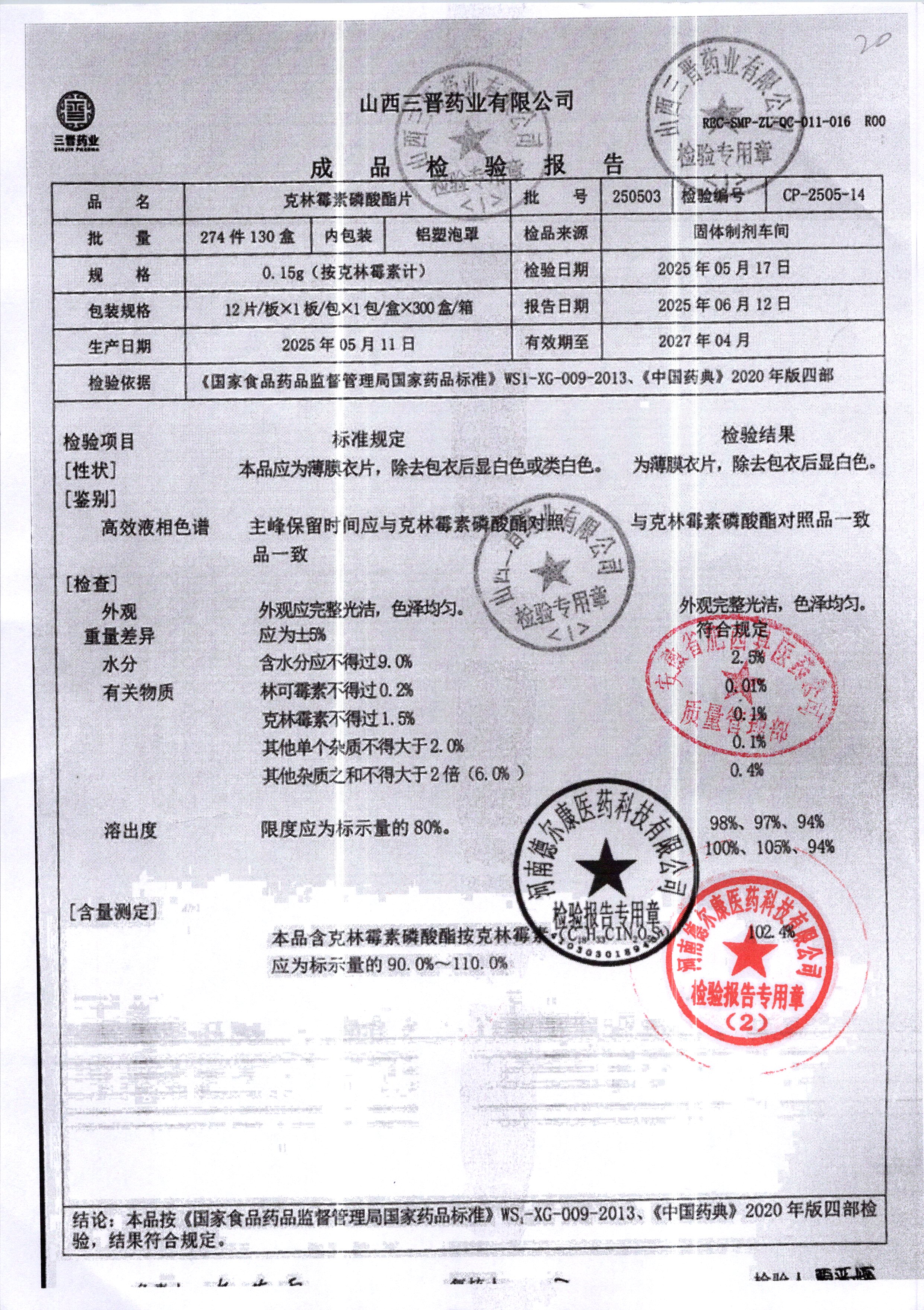 名稱 規(guī)格 批號 藥檢報告