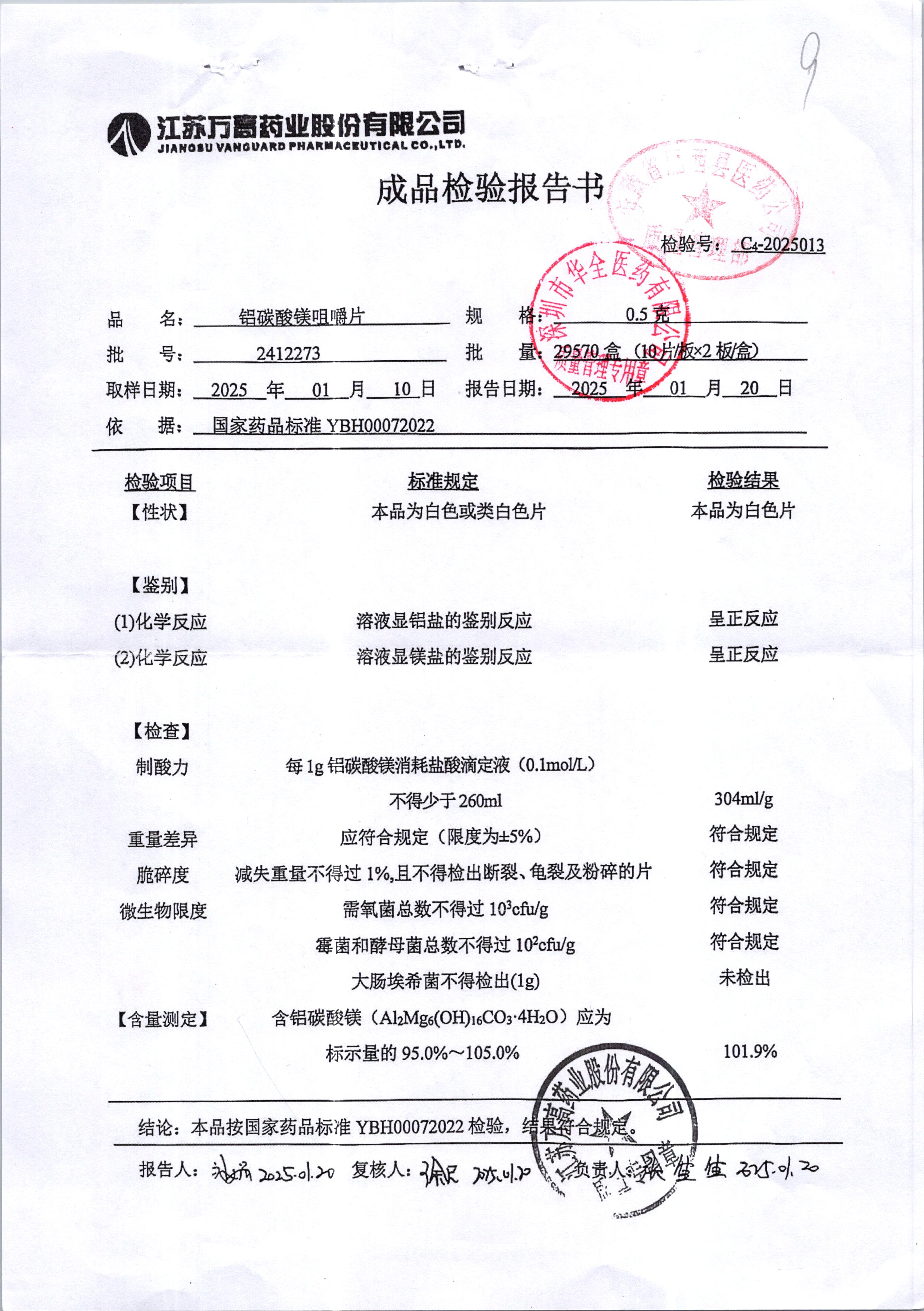 名稱 規(guī)格 批號 藥檢報(bào)告