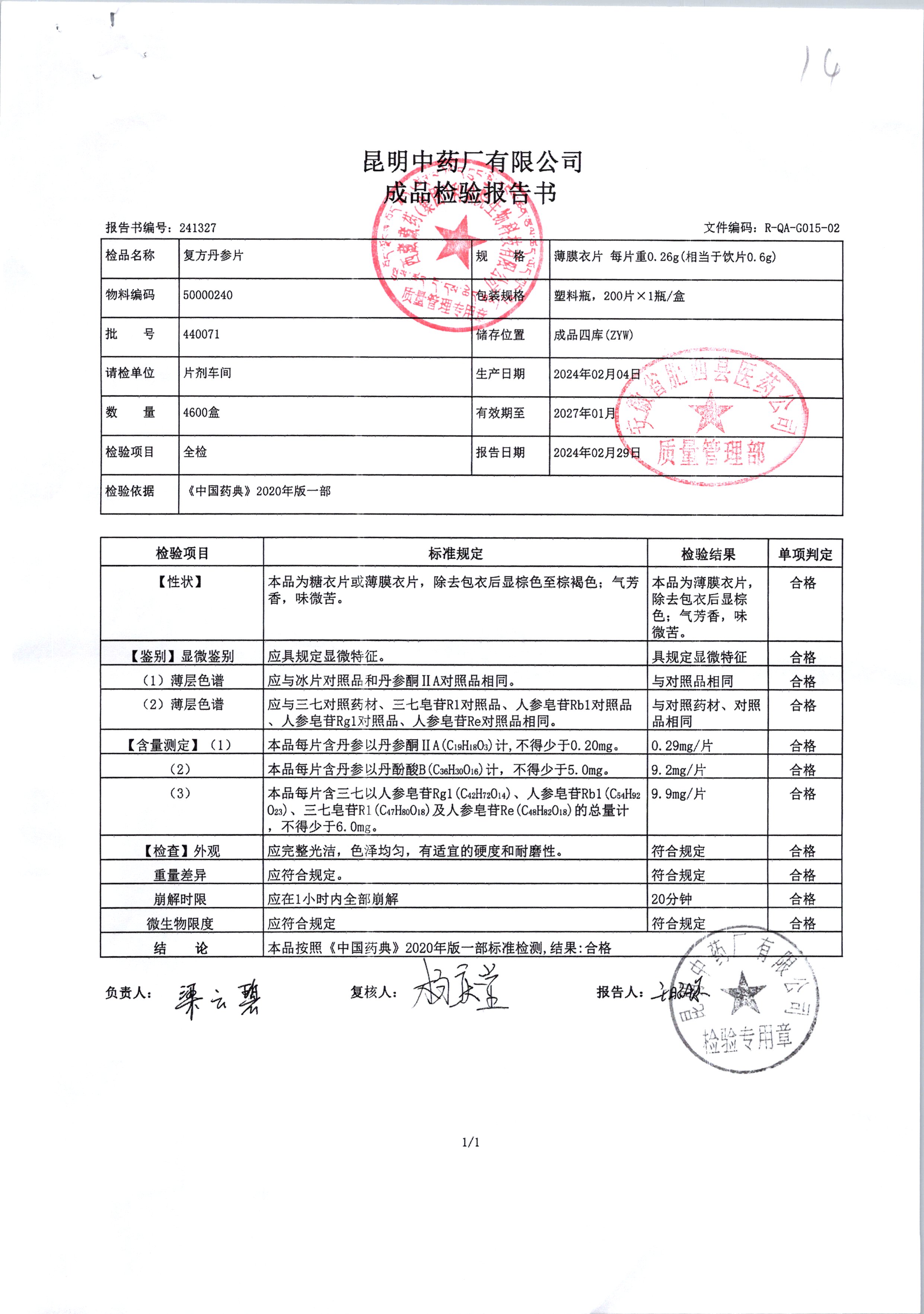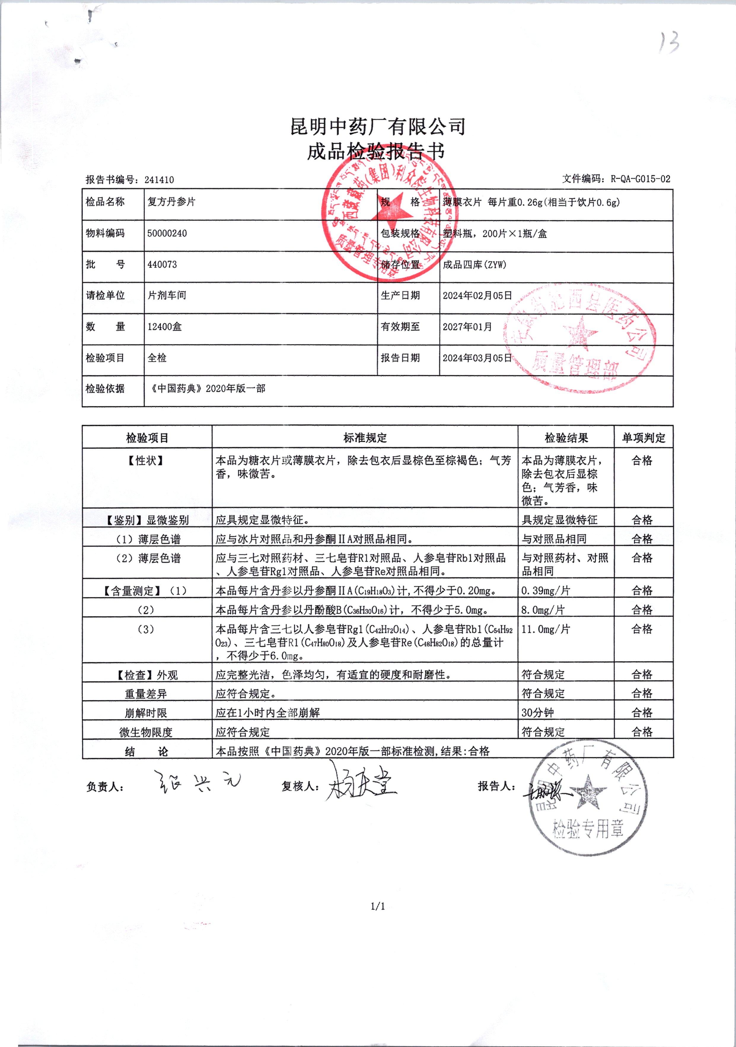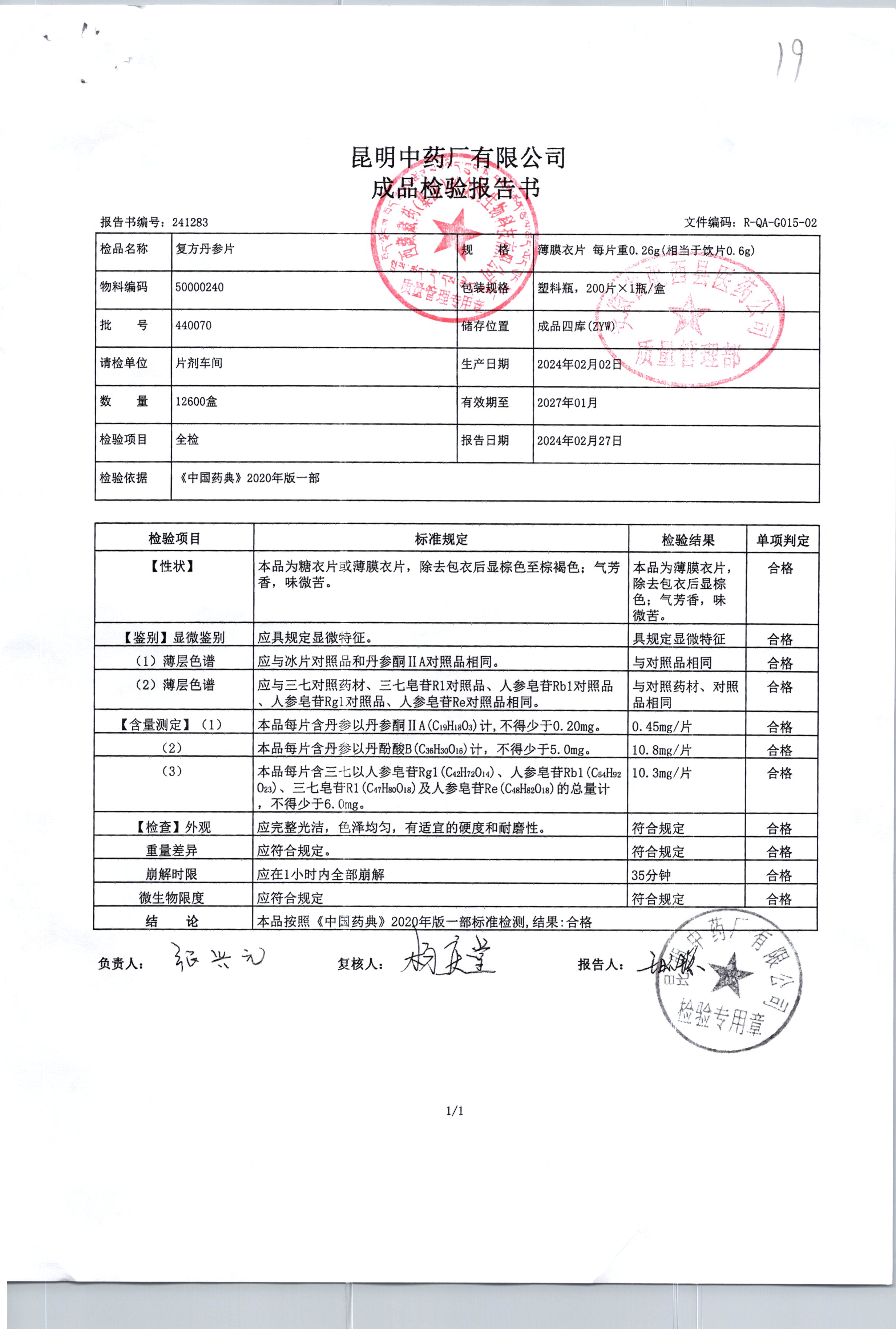 復(fù)方丹參片 0.26g 440071 查看詳情