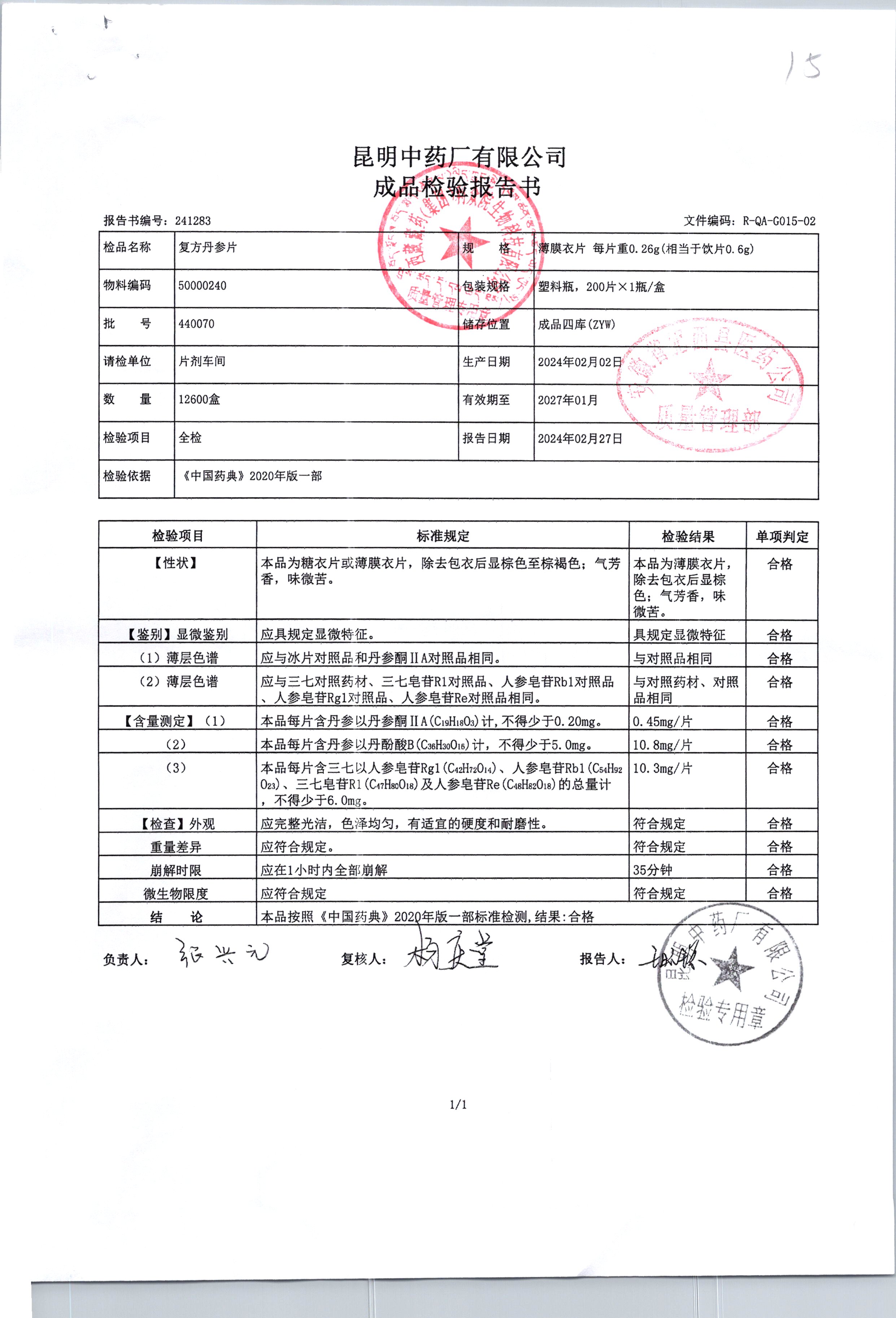 復(fù)方丹參片 0.26g 440070 查看詳情