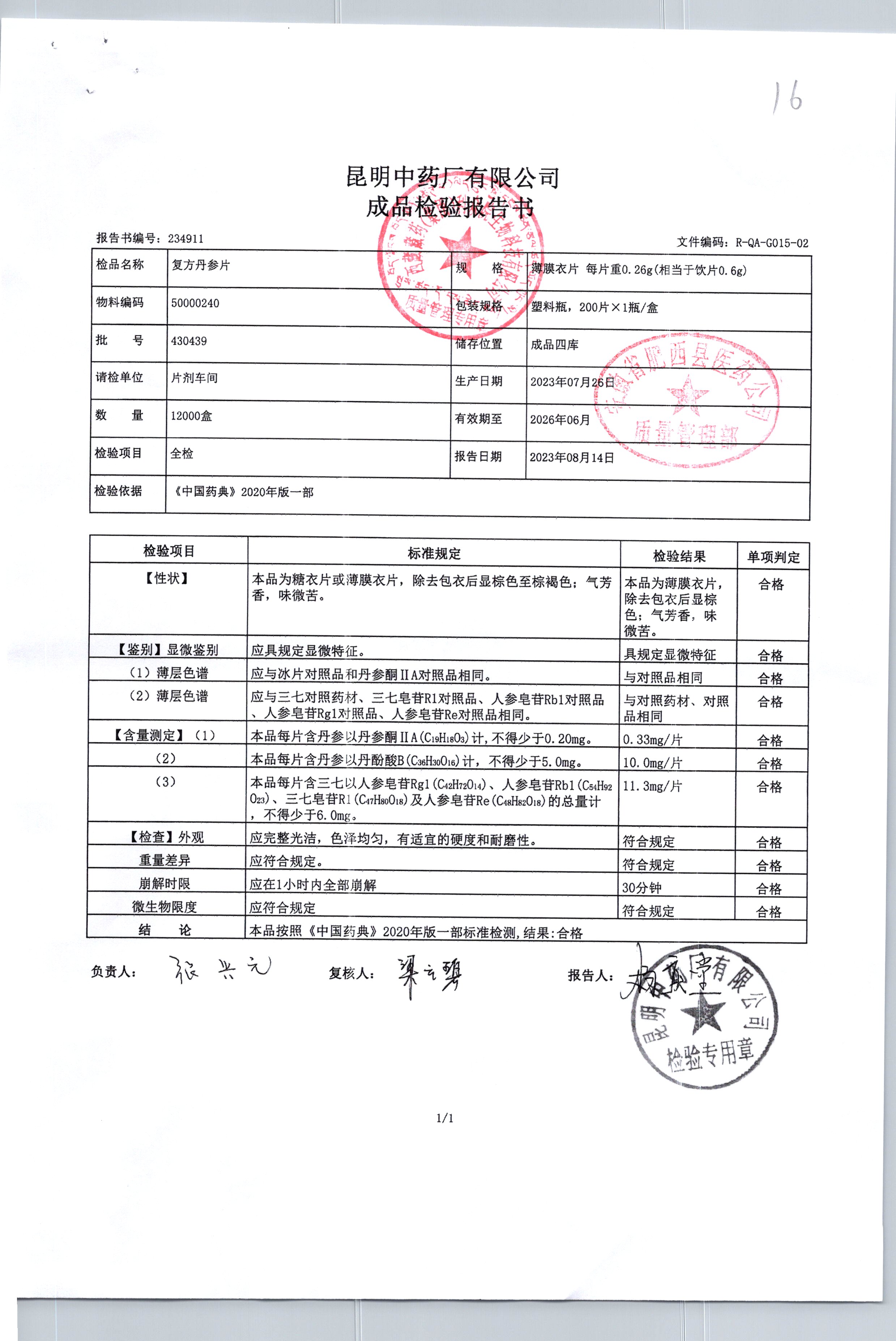 復(fù)方丹參片 0.26g 430439 查看詳情