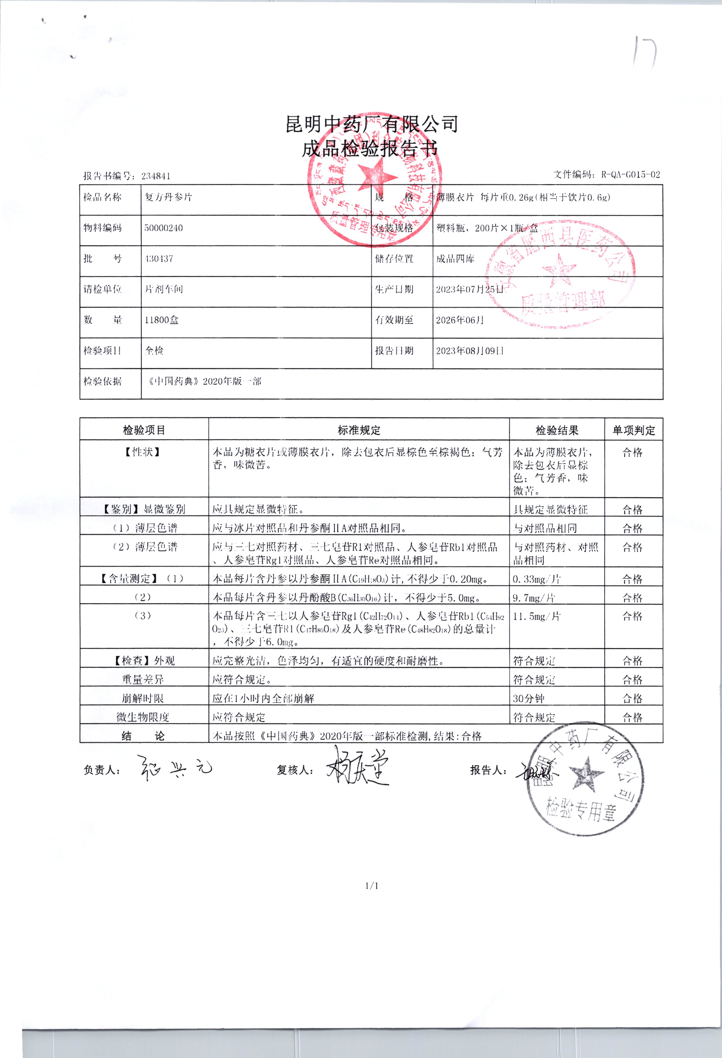 復(fù)方丹參片 0.26g 430437 查看詳情