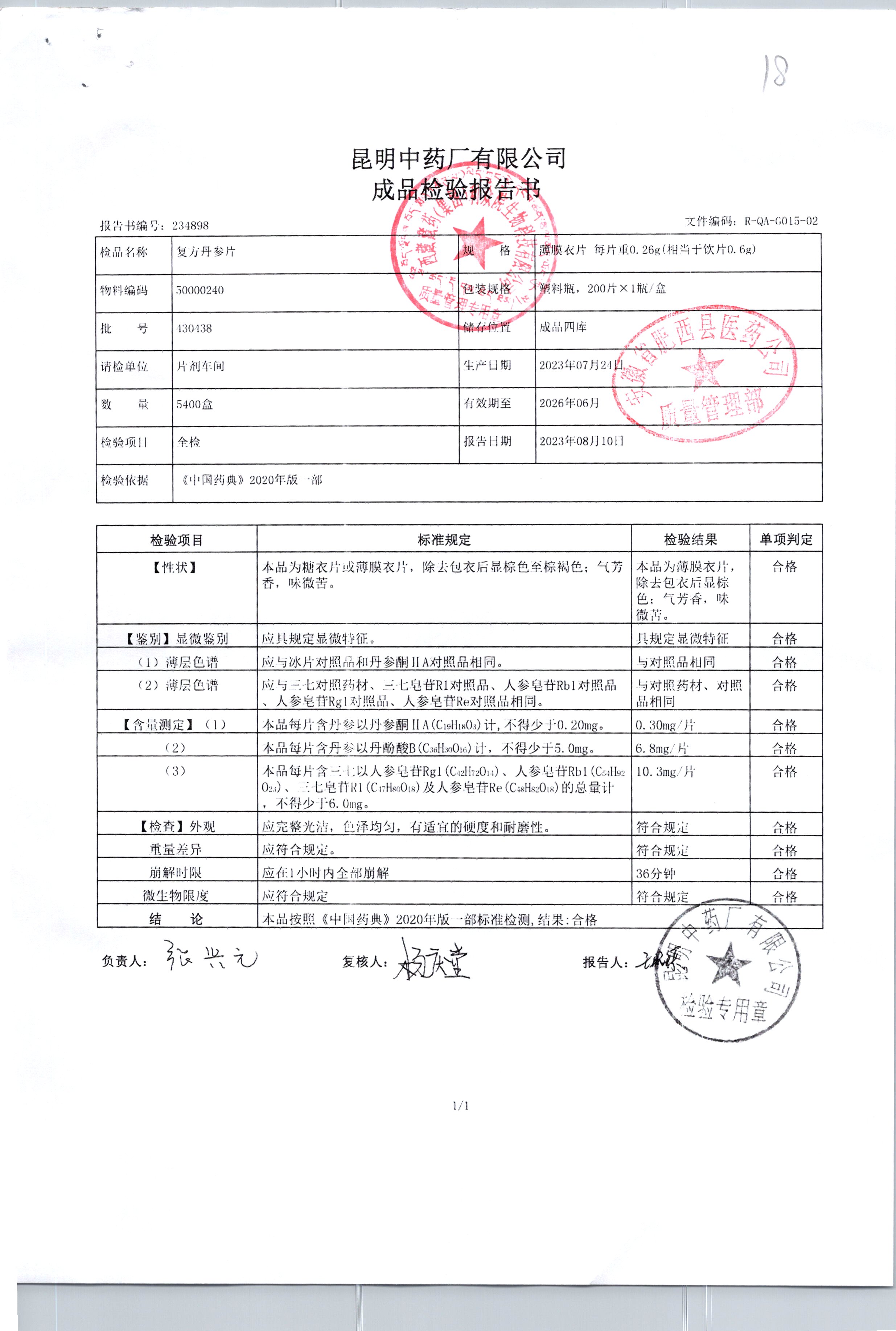 復(fù)方丹參片 0.26g 430438 查看詳情