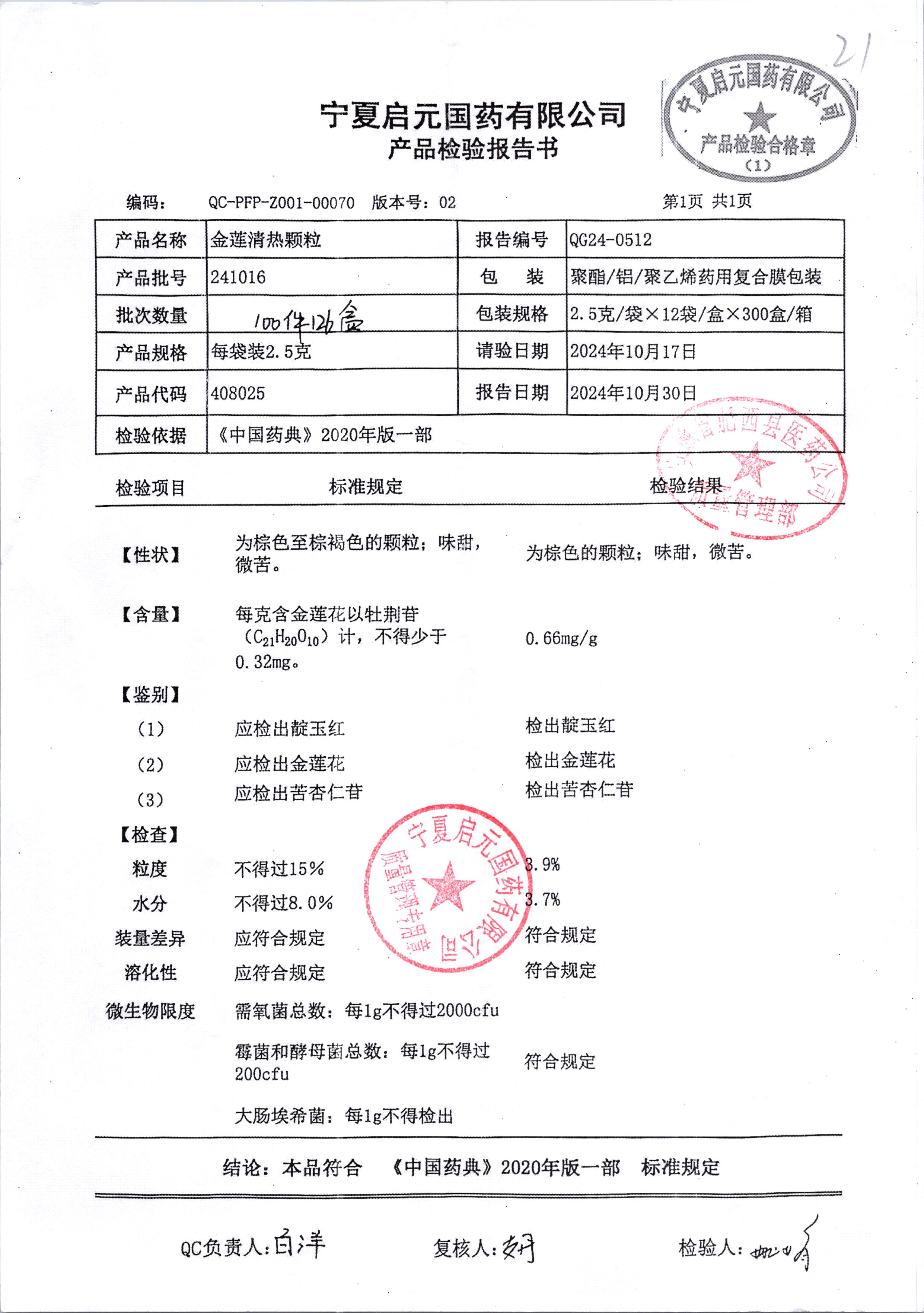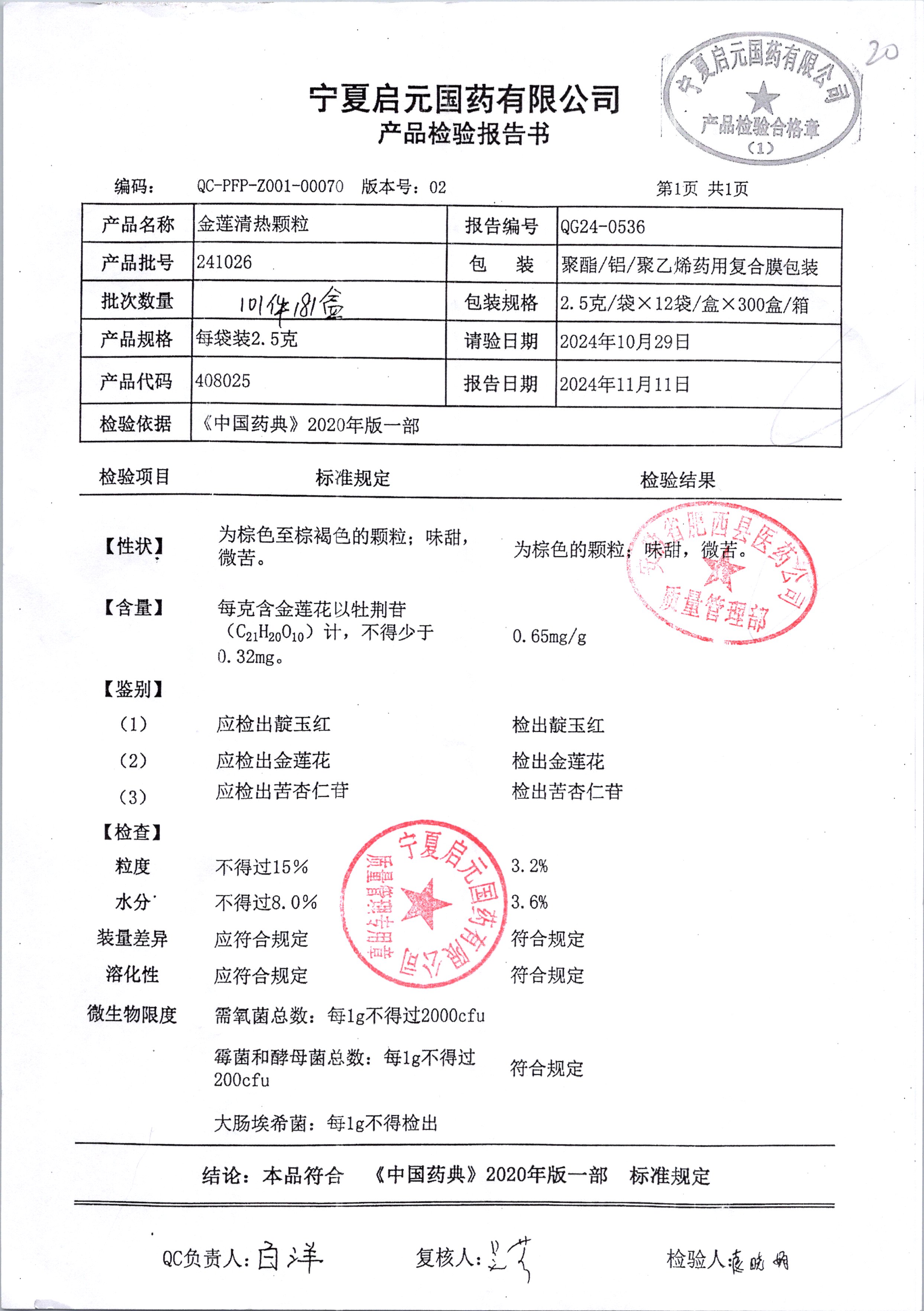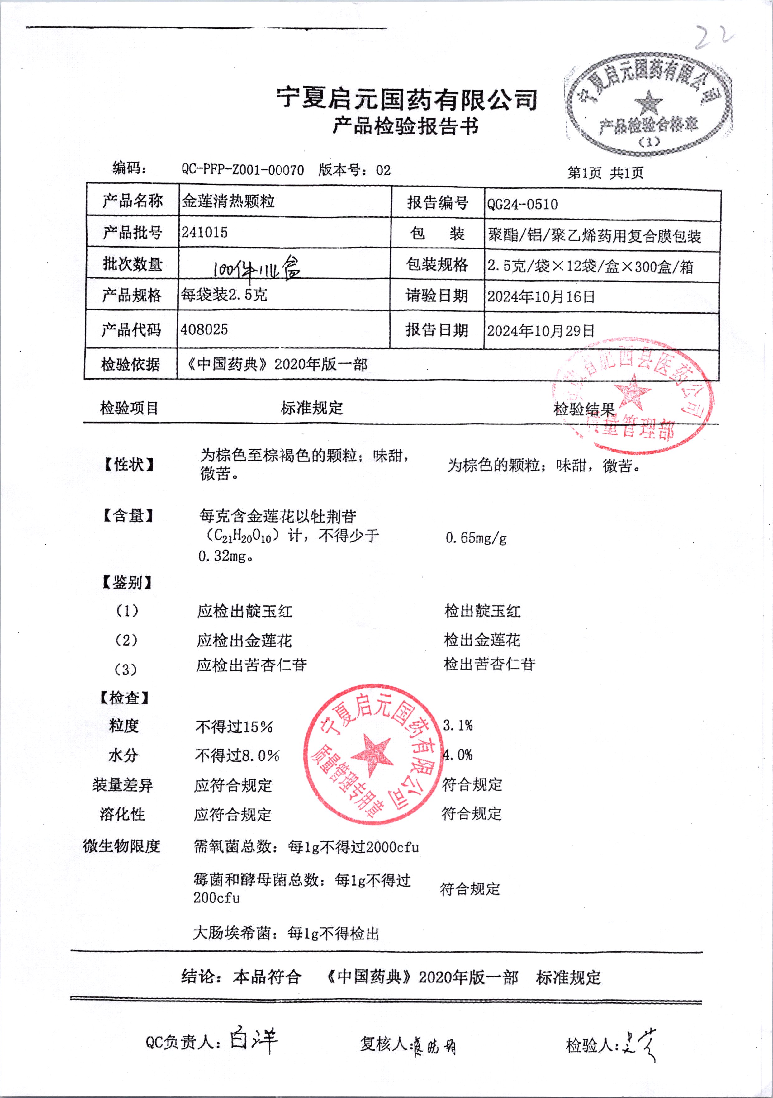 名稱(chēng) 規(guī)格 批號(hào) 藥檢報(bào)告