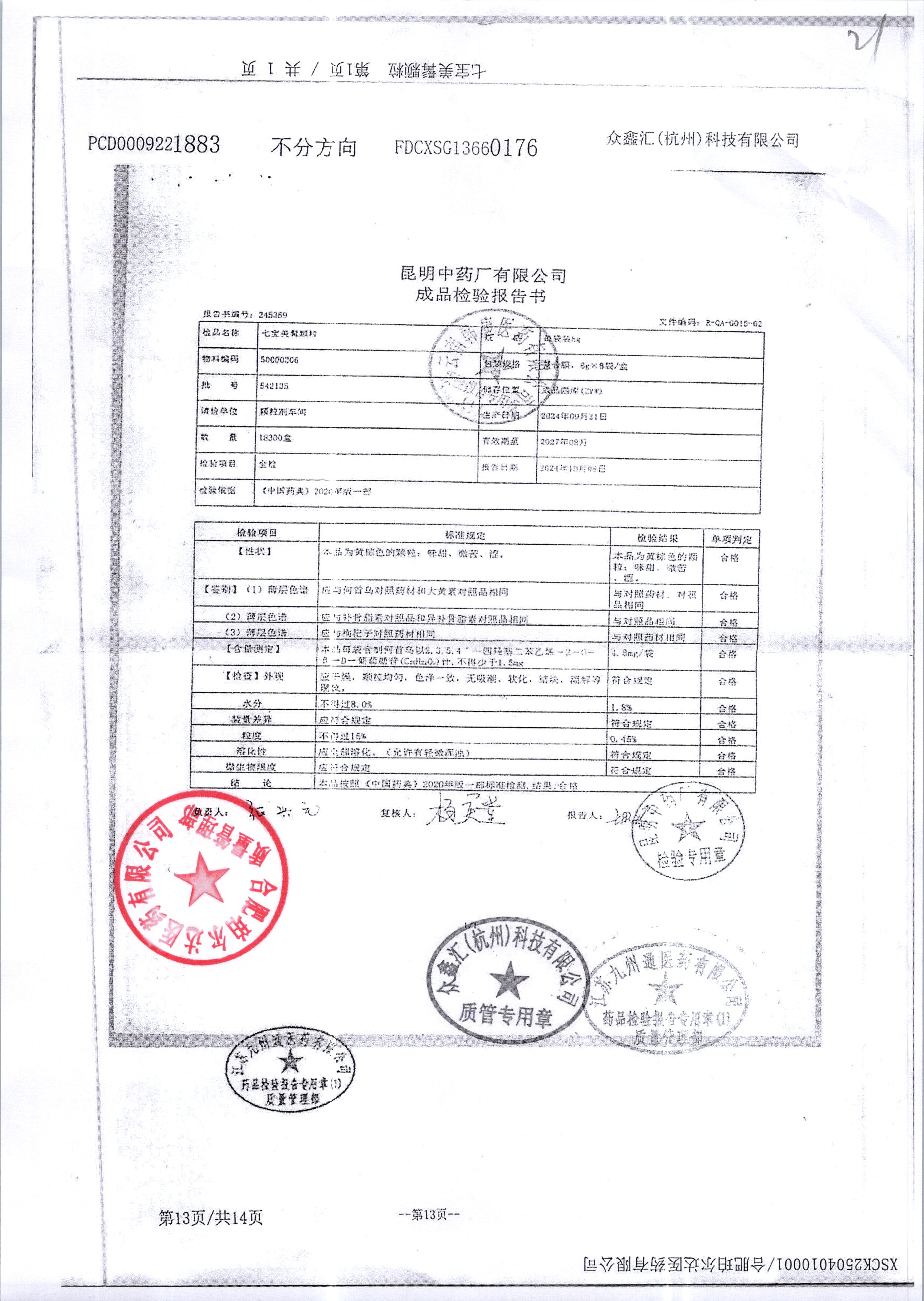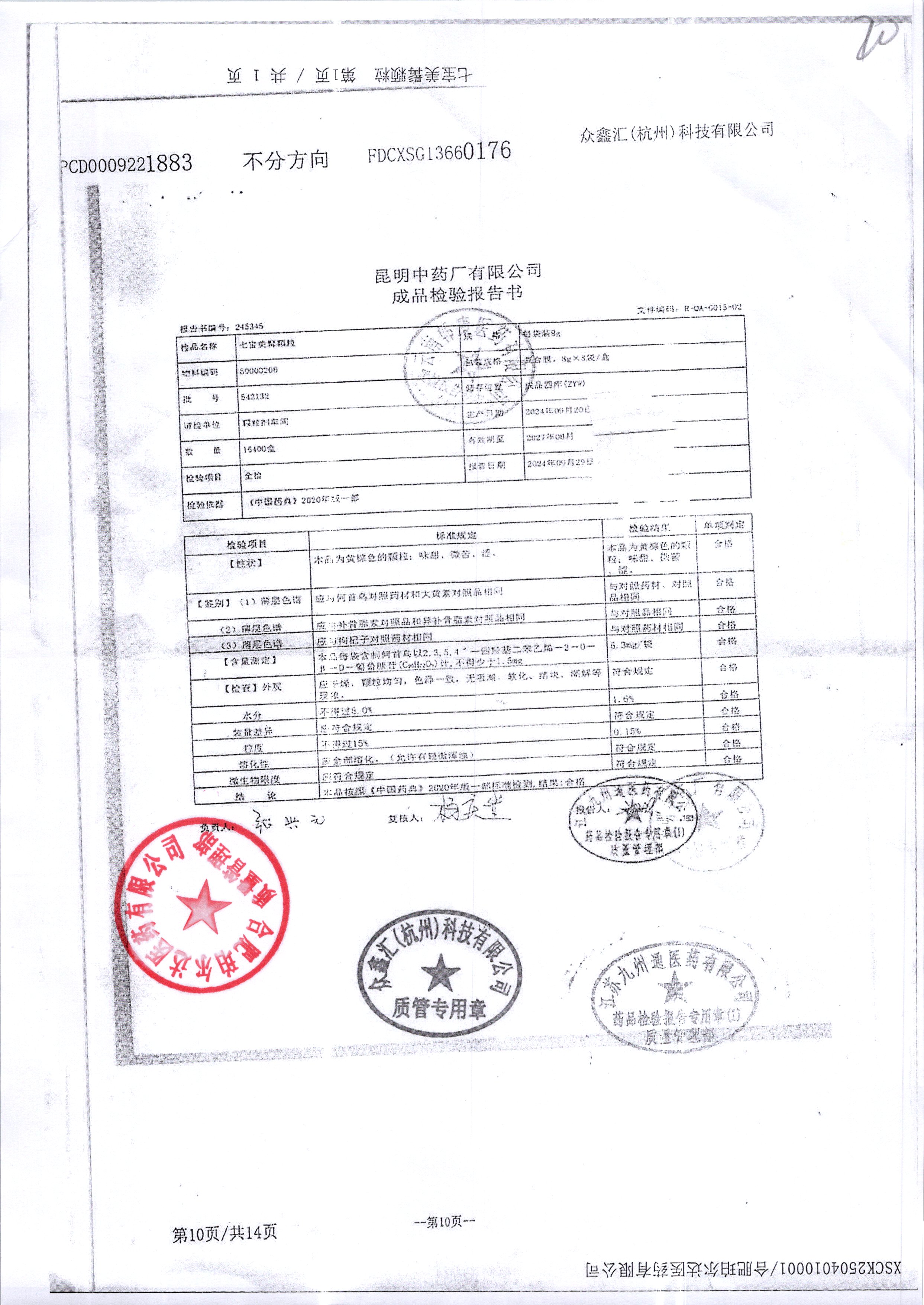 名稱 規(guī)格 批號 藥檢報告