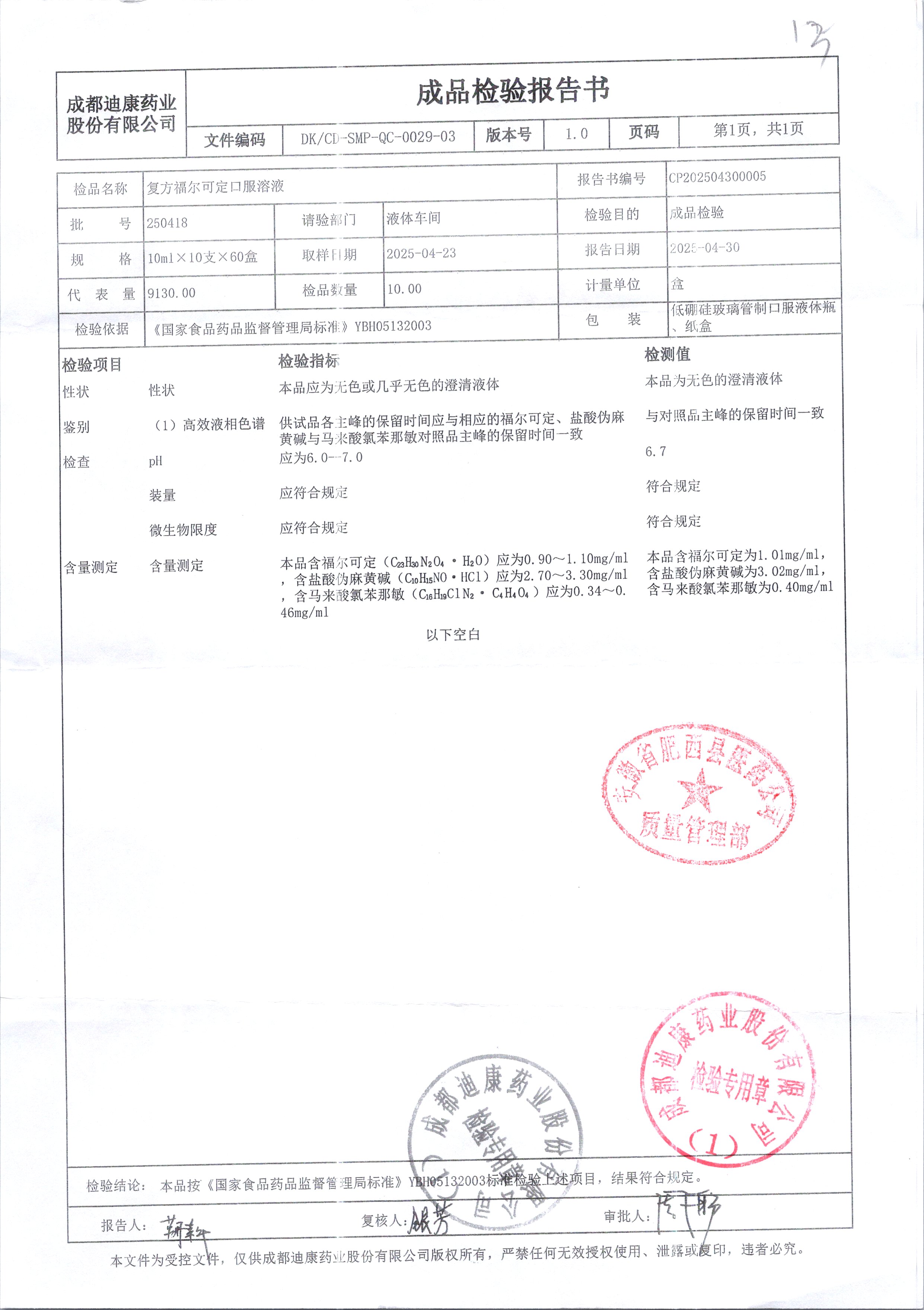 復(fù)方福爾可定口服溶液 10ml*10支 250418 查看詳情