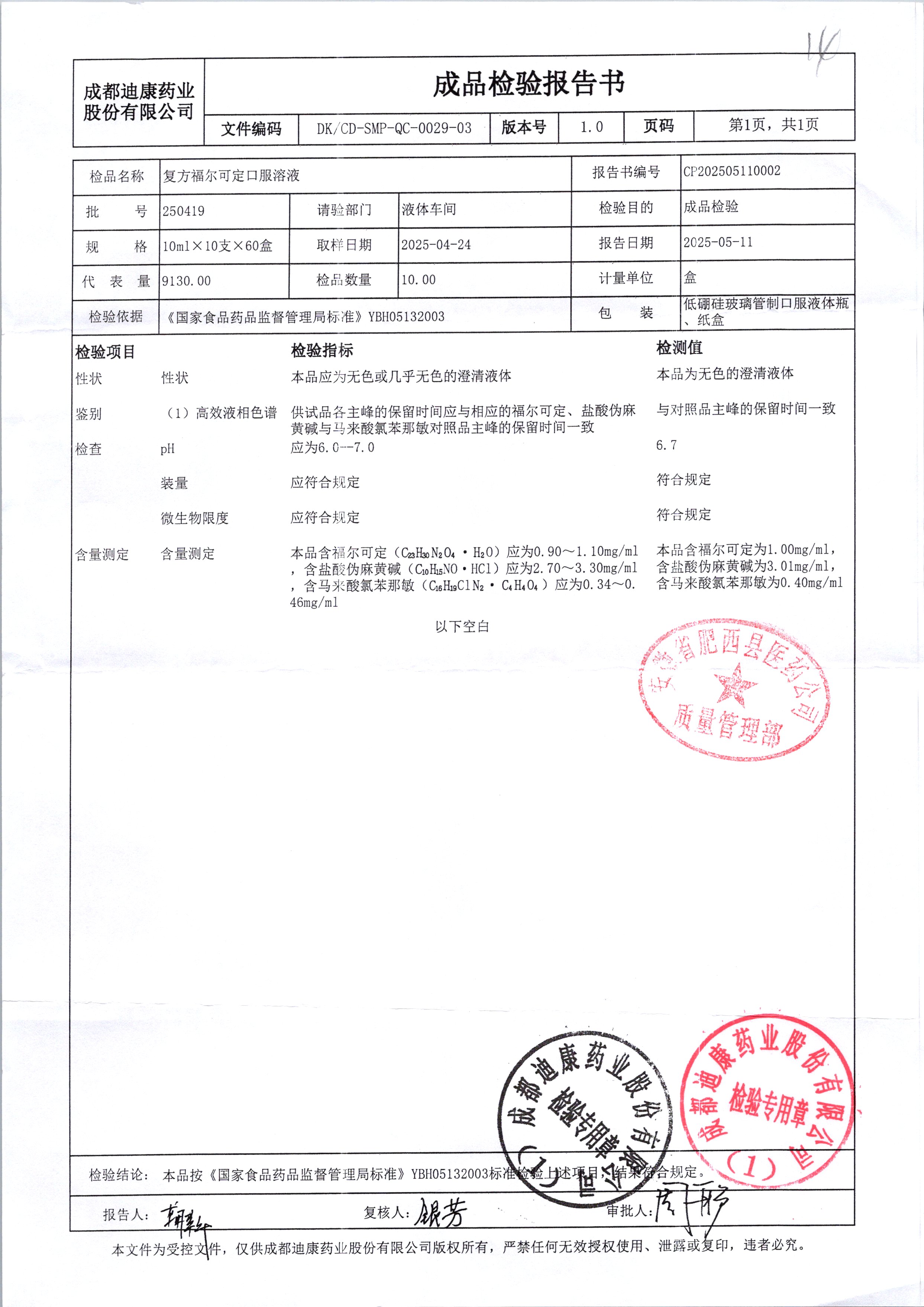 復(fù)方福爾可定口服溶液 10ml*10支 250419 查看詳情