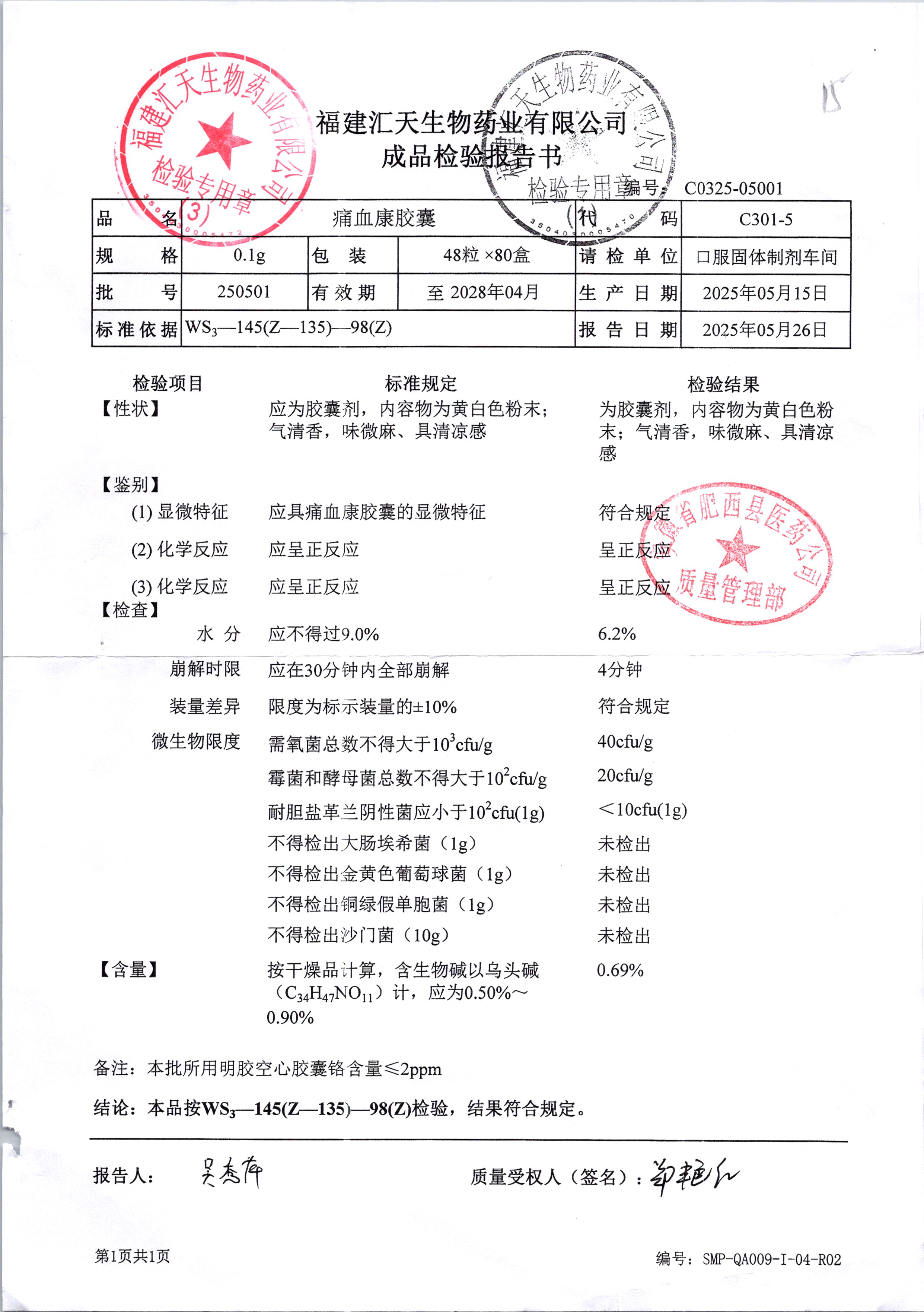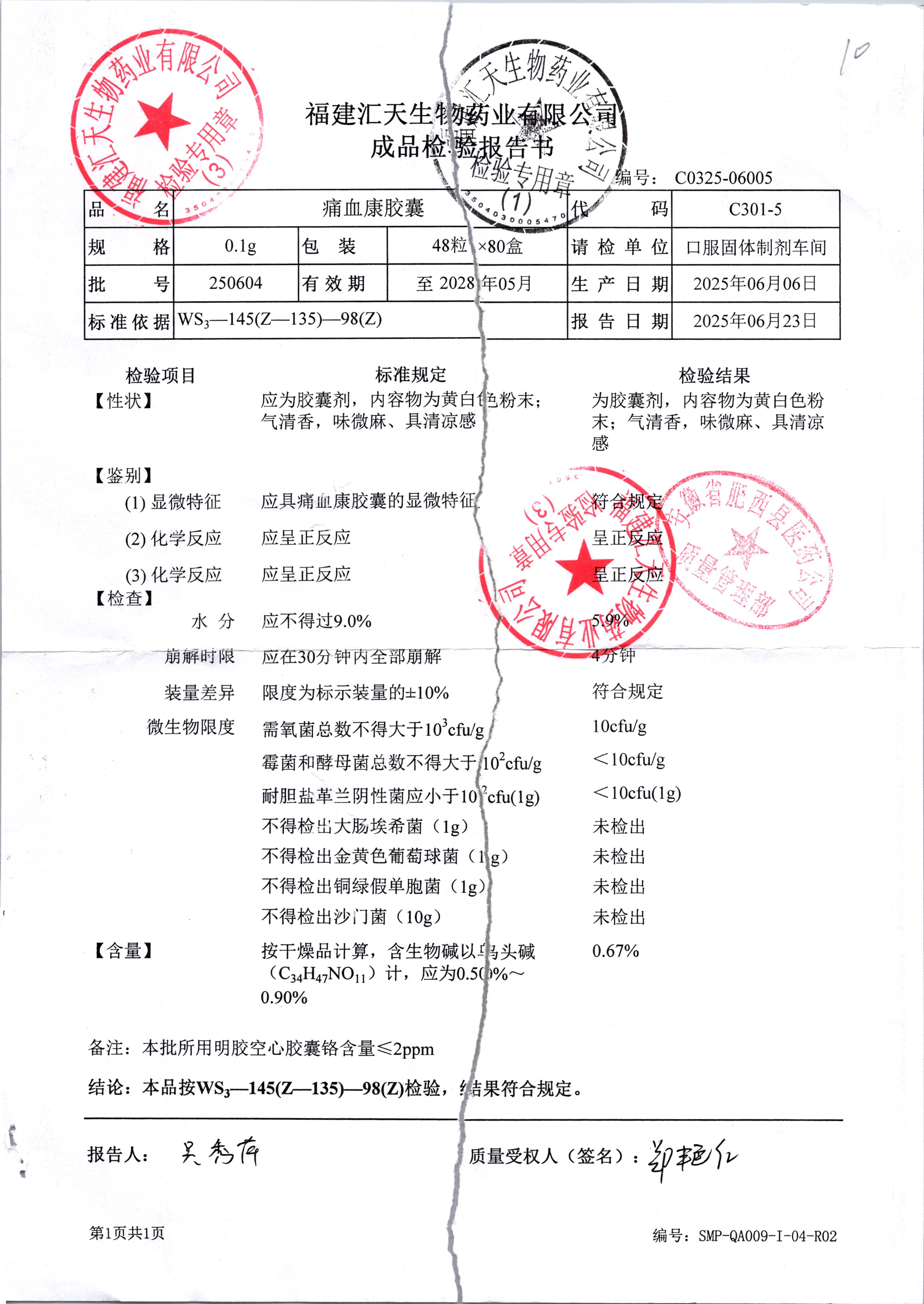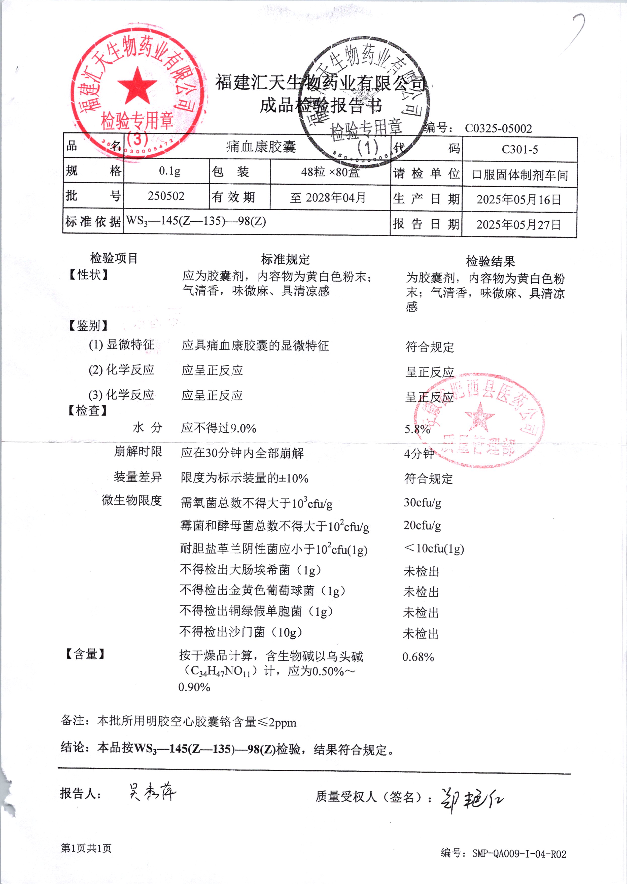 | 痛血康膠囊 | 0.1g*48粒 | 250501 | 查看詳情 |