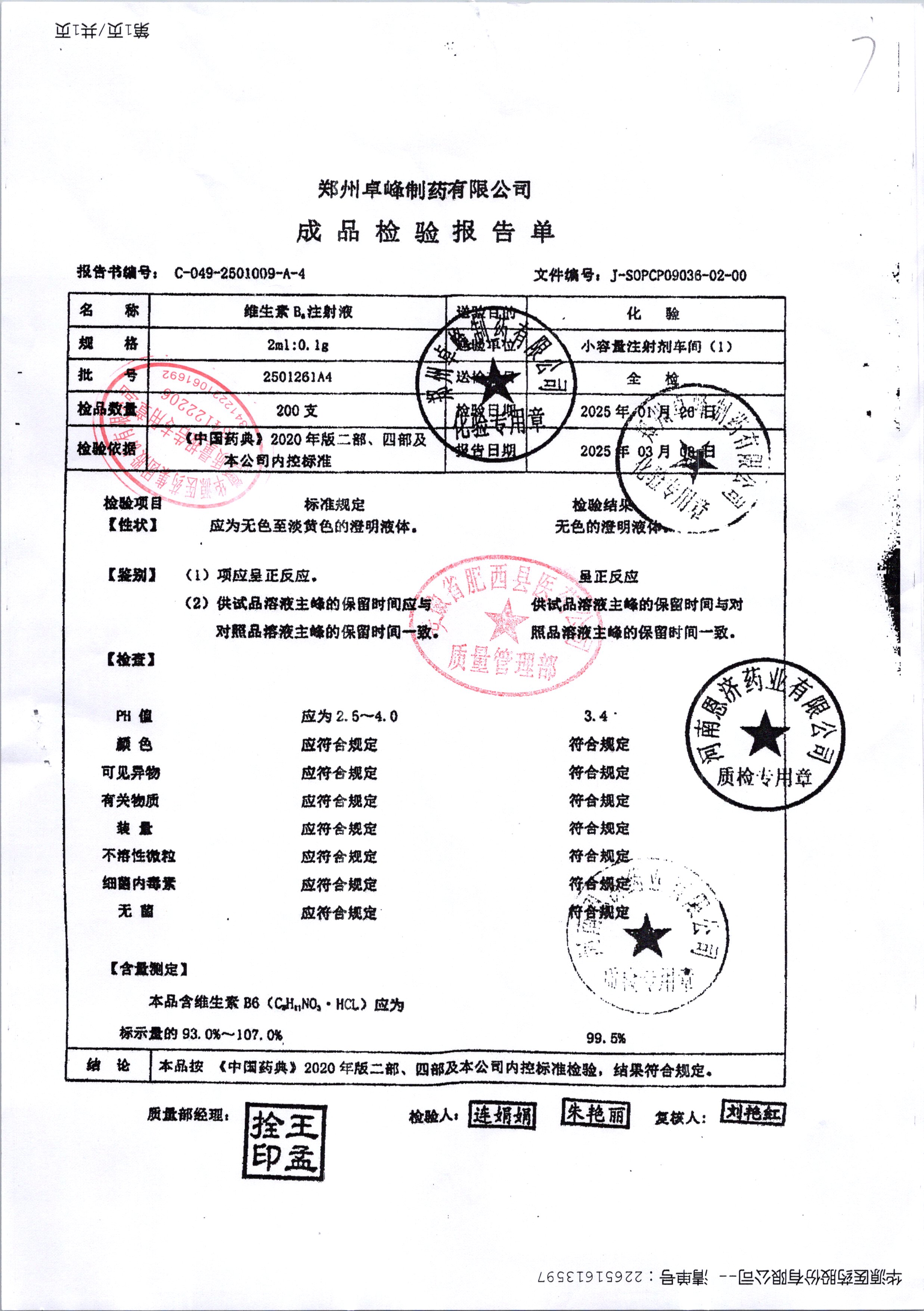 維生素B6注射液 2ml:0.1g 2501261A4 查看詳情