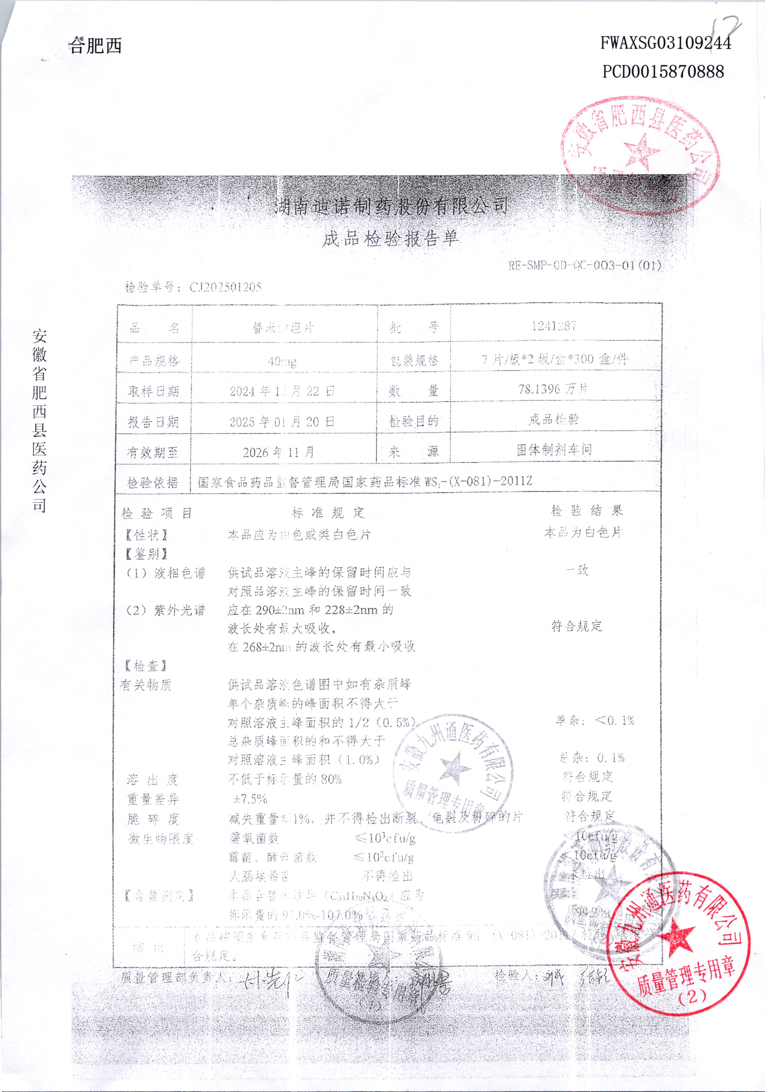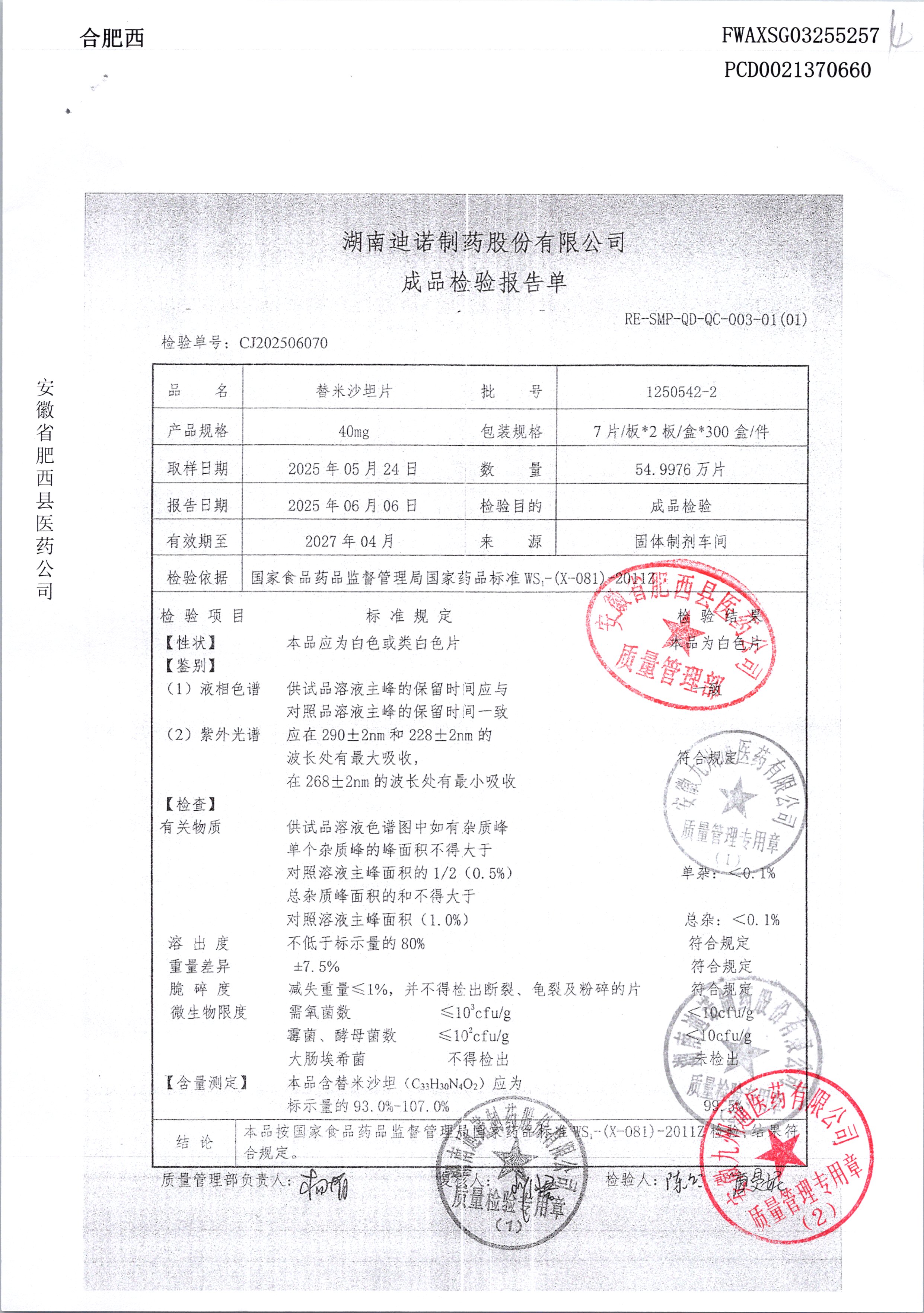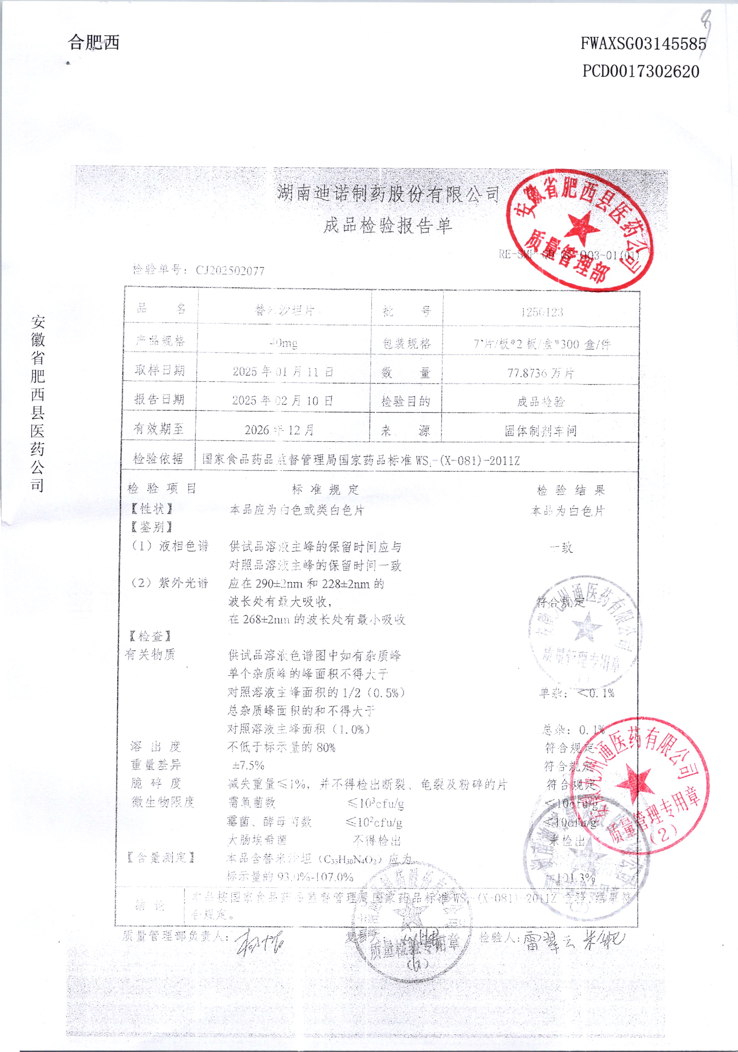 名稱 規(guī)格 批號 藥檢報告