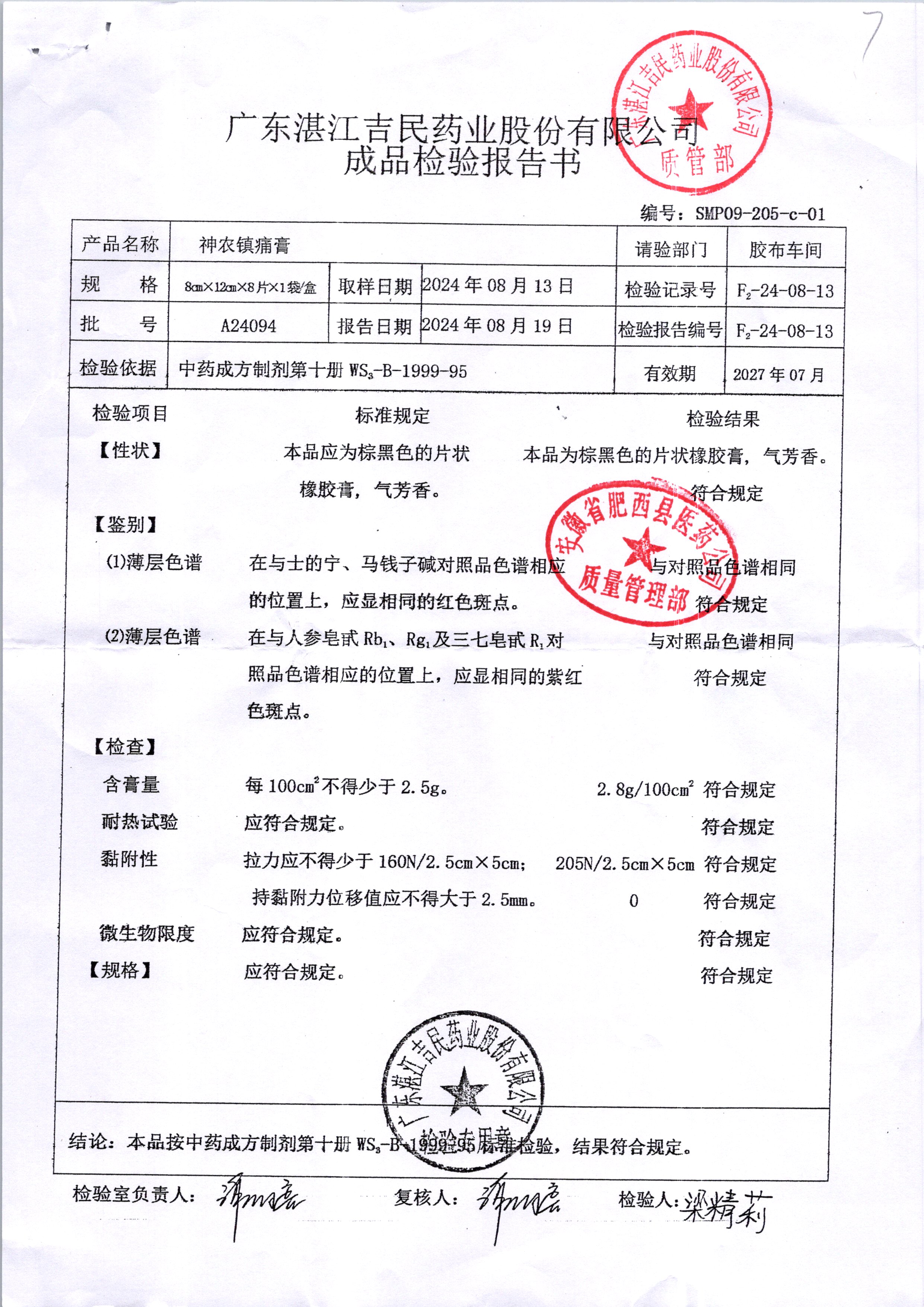 名稱 規(guī)格 批號 藥檢報告