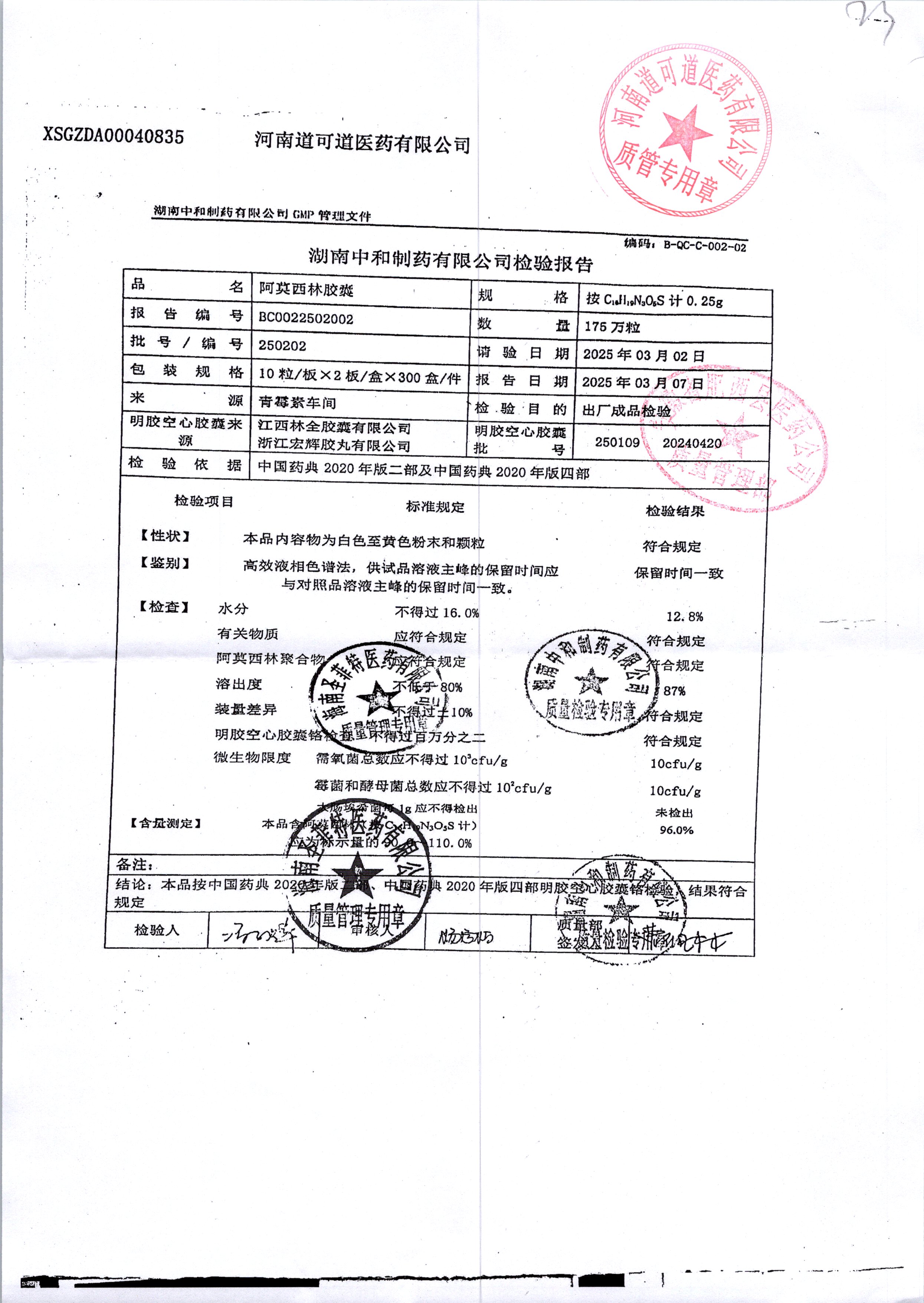 阿莫西林膠囊 0.25g*20s 250202 查看詳情