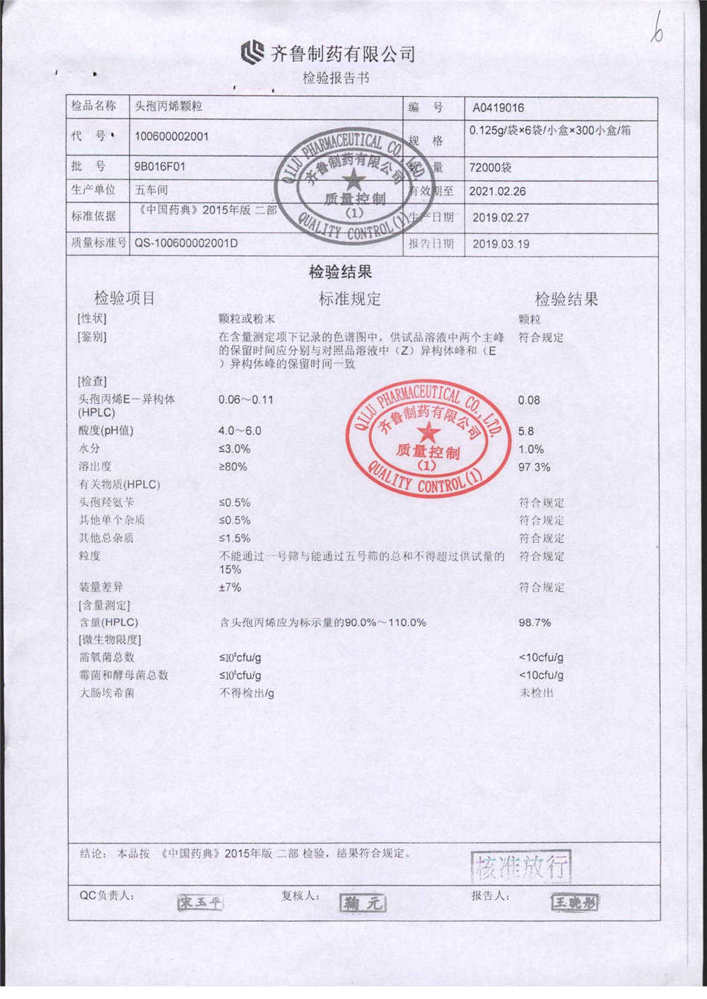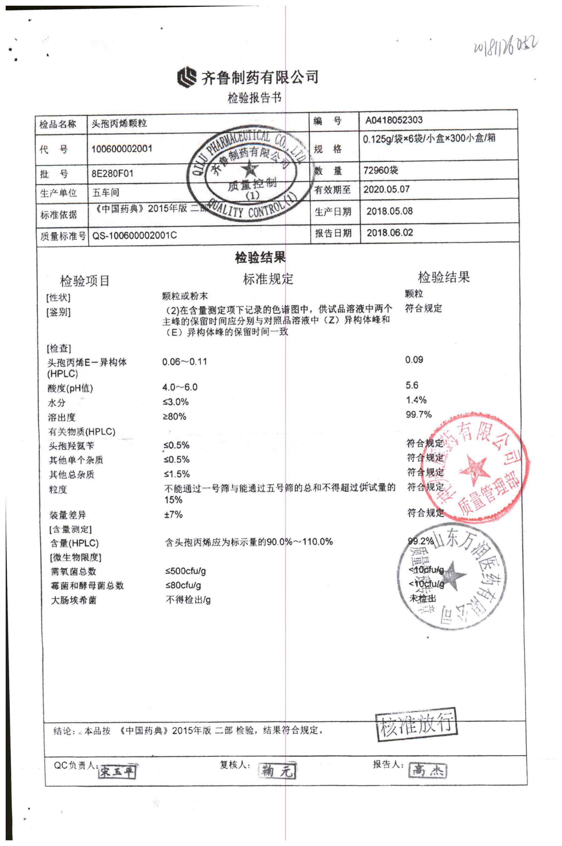 | 頭孢丙烯顆粒 | 0.125g*6袋 | 8H451F01 | 查看詳情 |