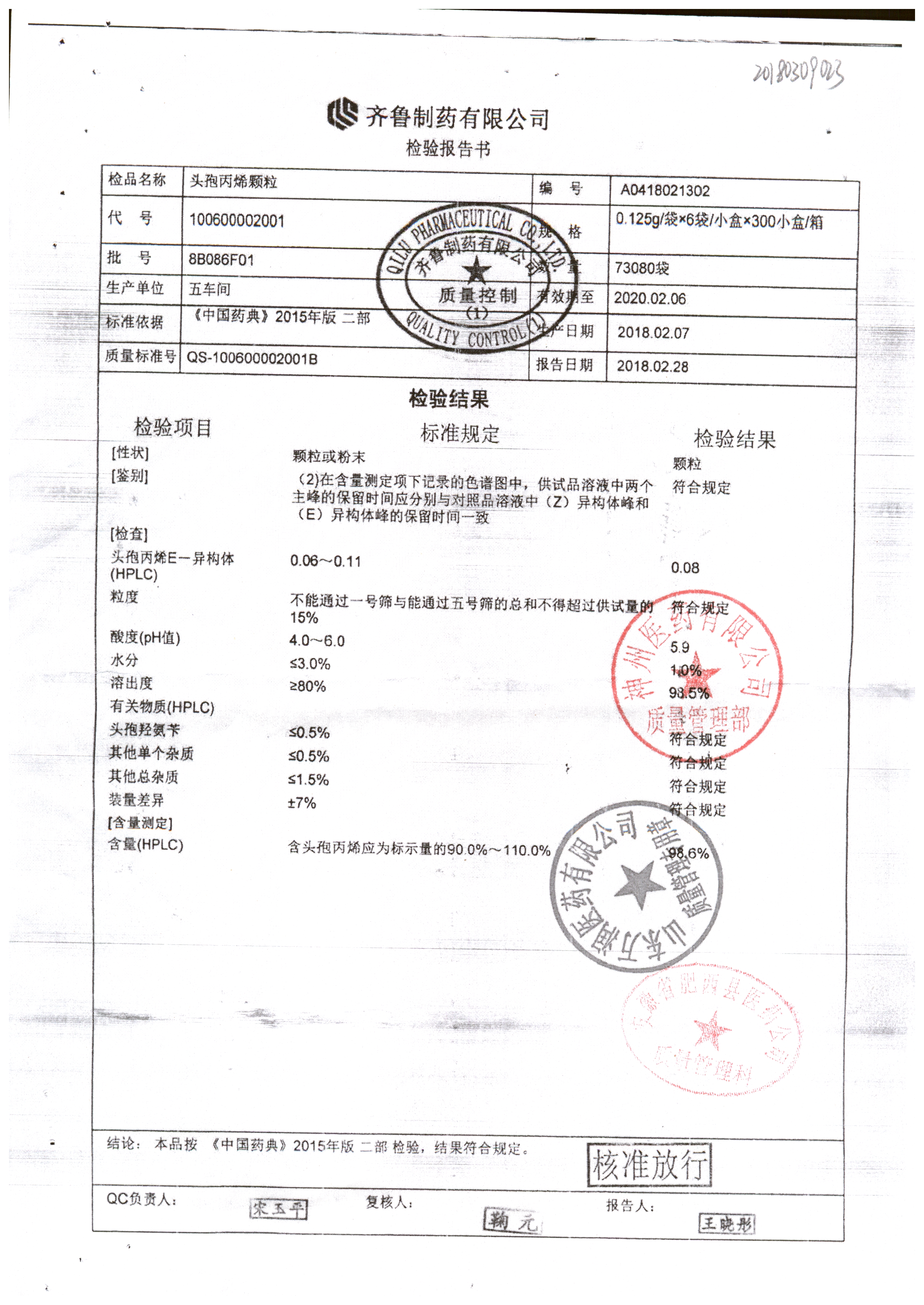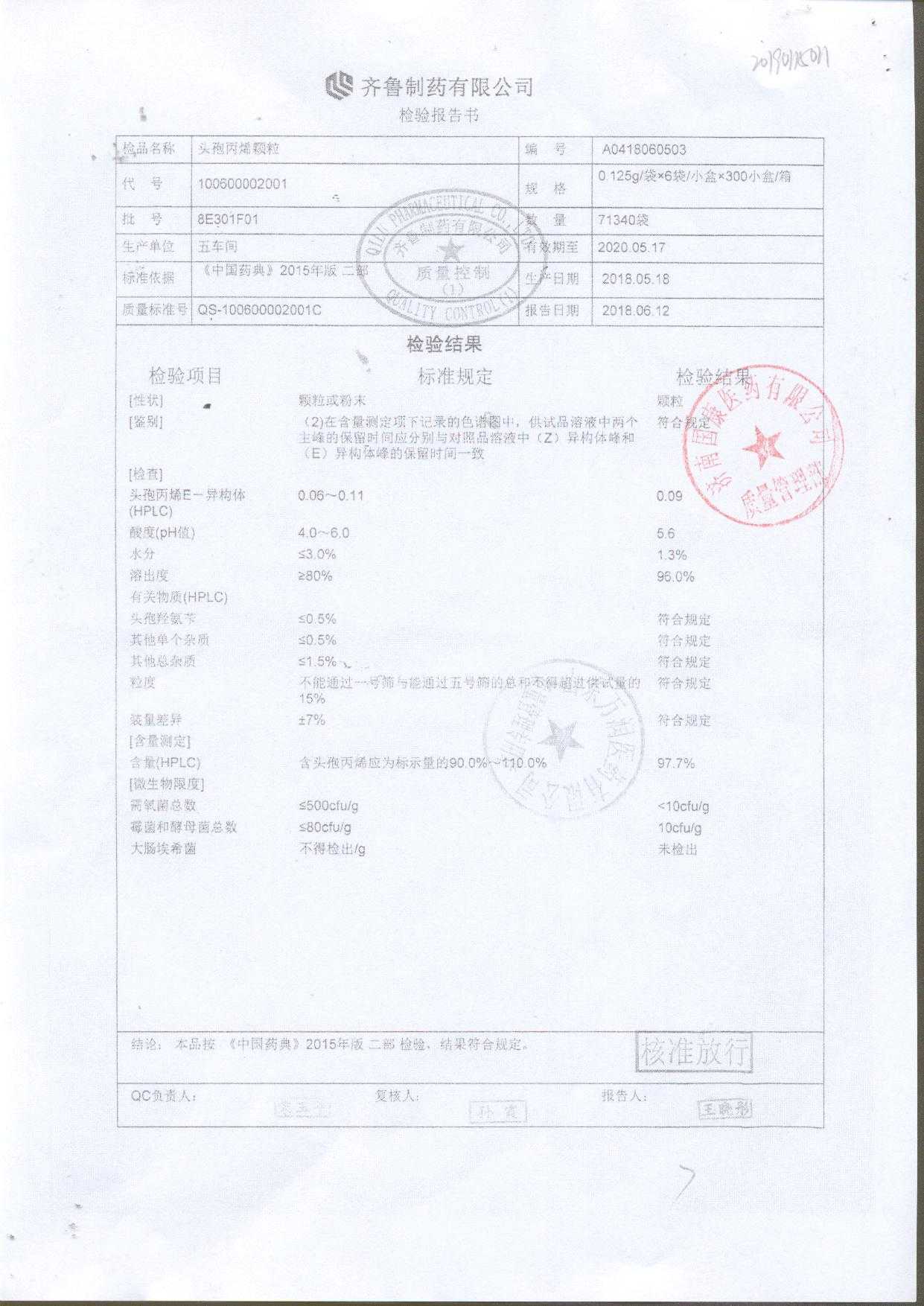| 頭孢丙烯顆粒 | 0.125g*6袋 | 8C125F01 | 查看詳情 |