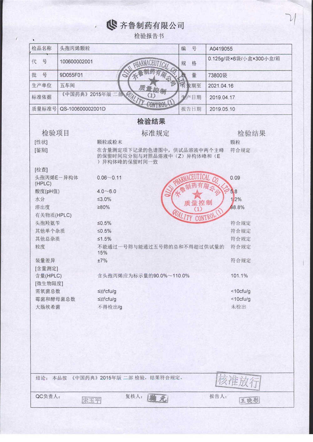 | 名稱 | 規(guī)格 | 批號(hào) | 藥檢報(bào)告 |