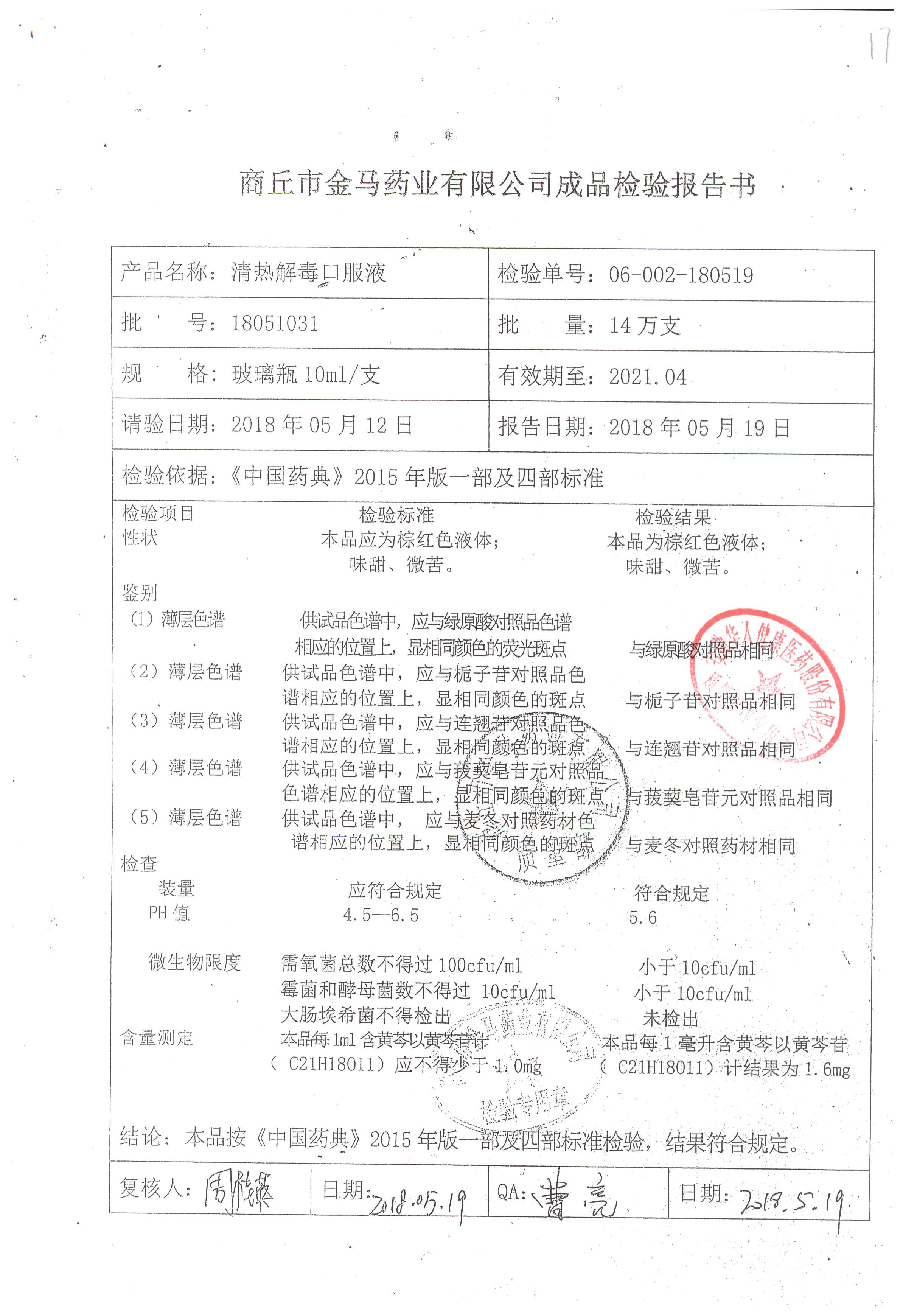| 清熱解毒口服液 | 10ml | 19021231 | 查看詳情 |
