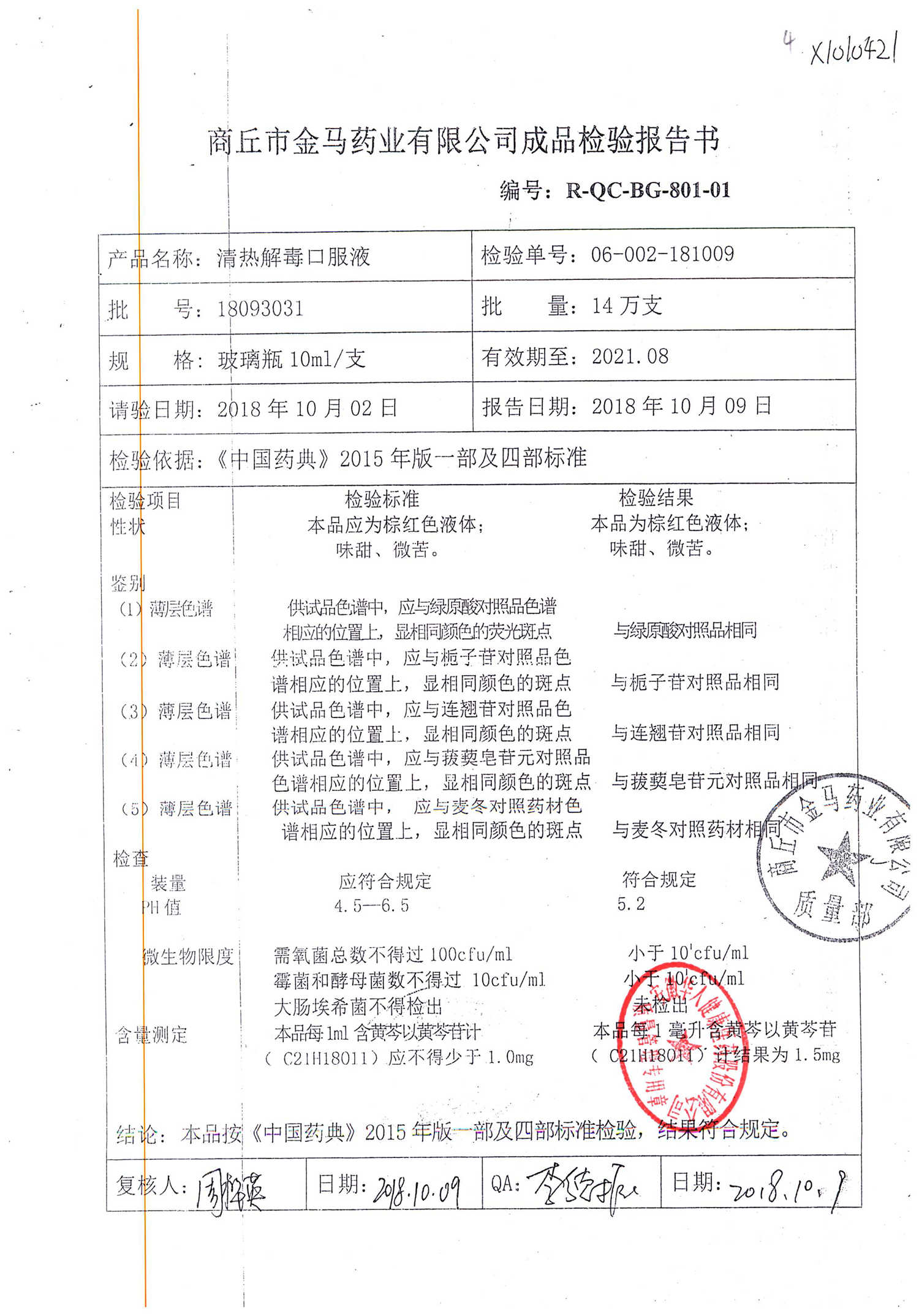 | 清熱解毒口服液 | 10ml | 21051231 | 查看詳情 |