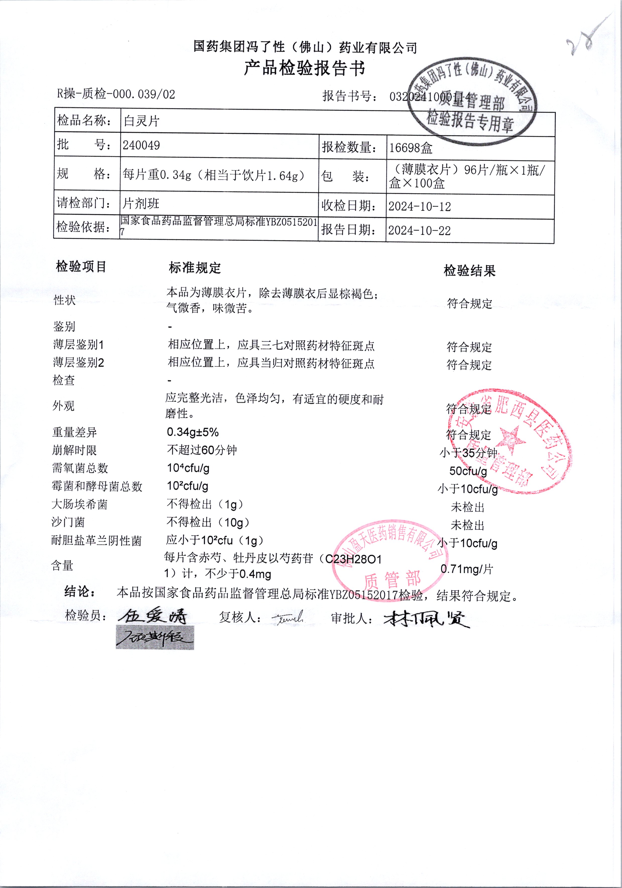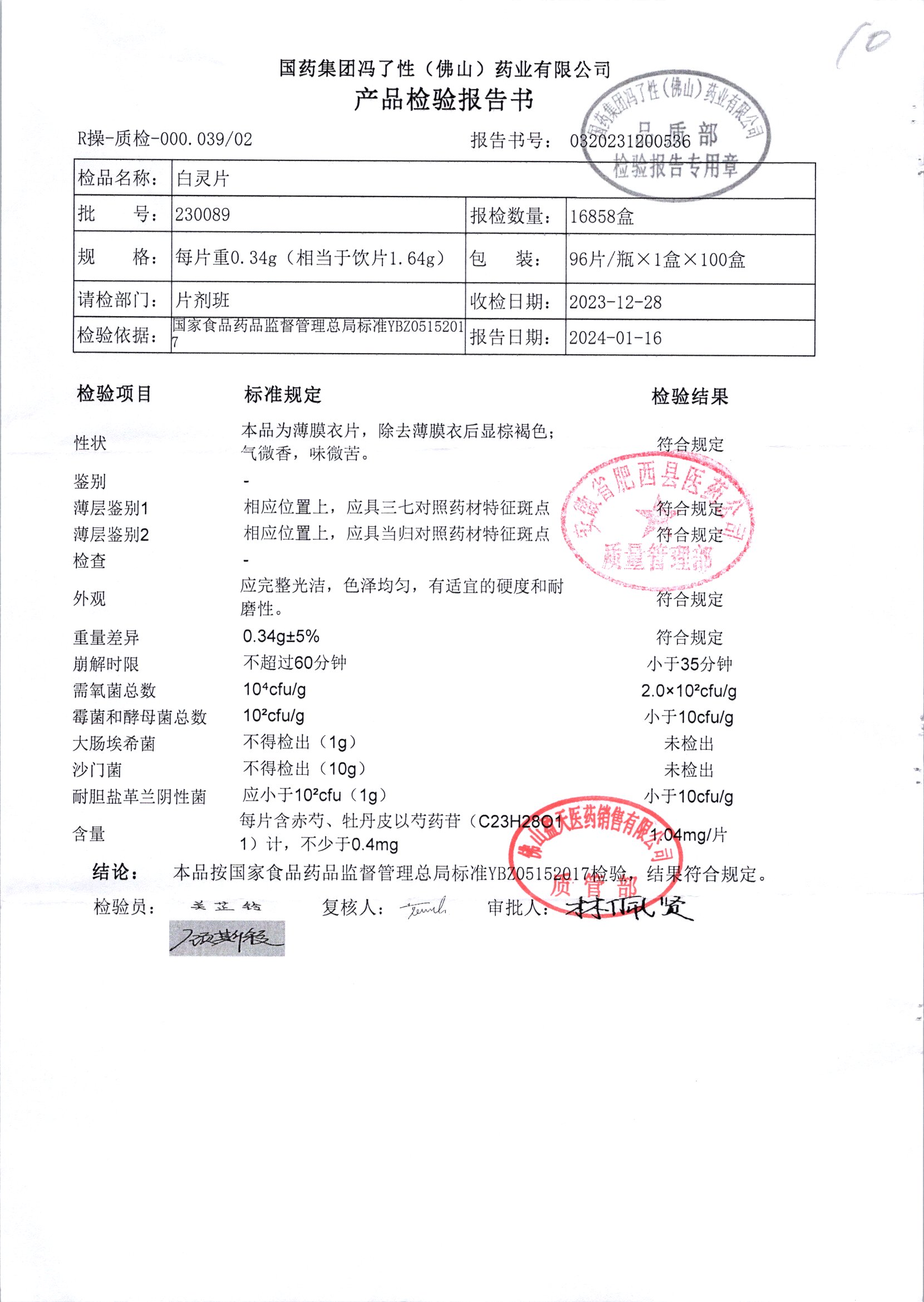 | 名稱 | 規(guī)格 | 批號 | 藥檢報告 |
